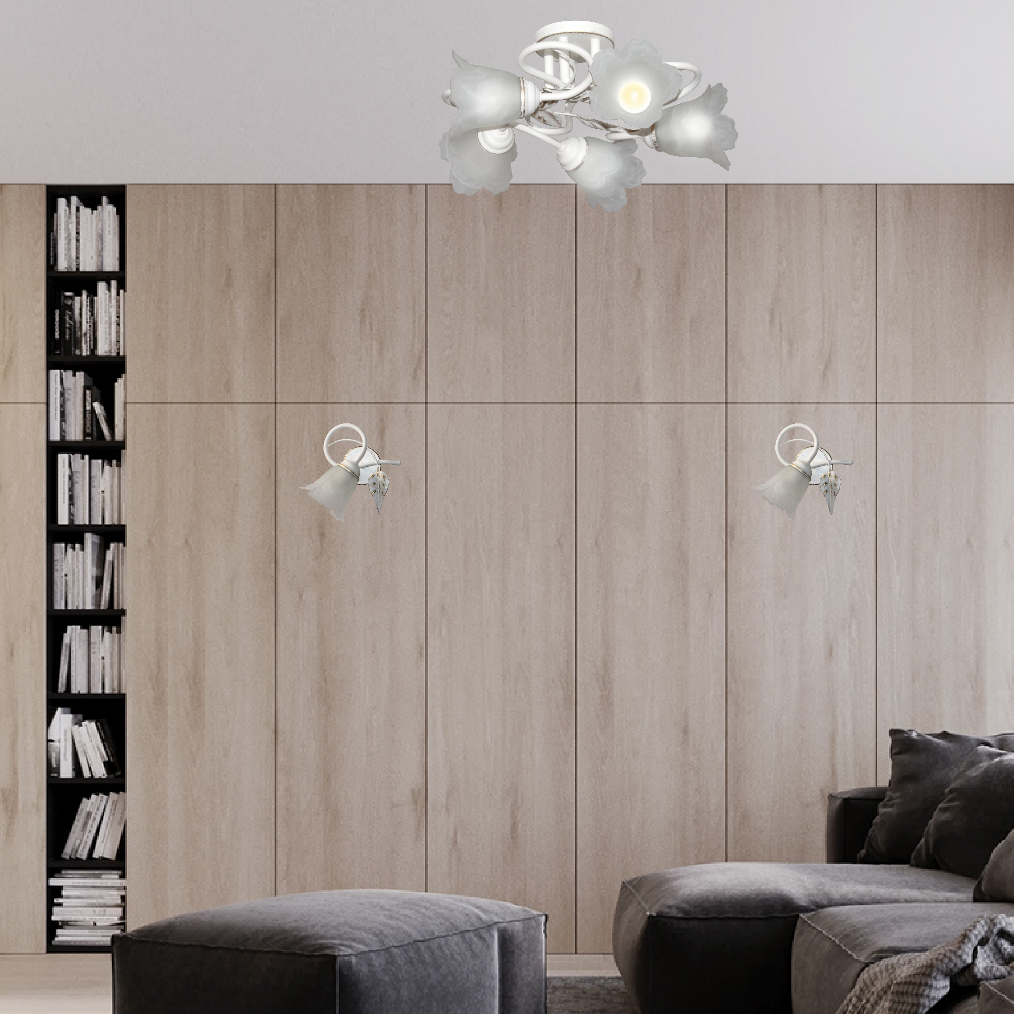 - Декор плафона: Цветы