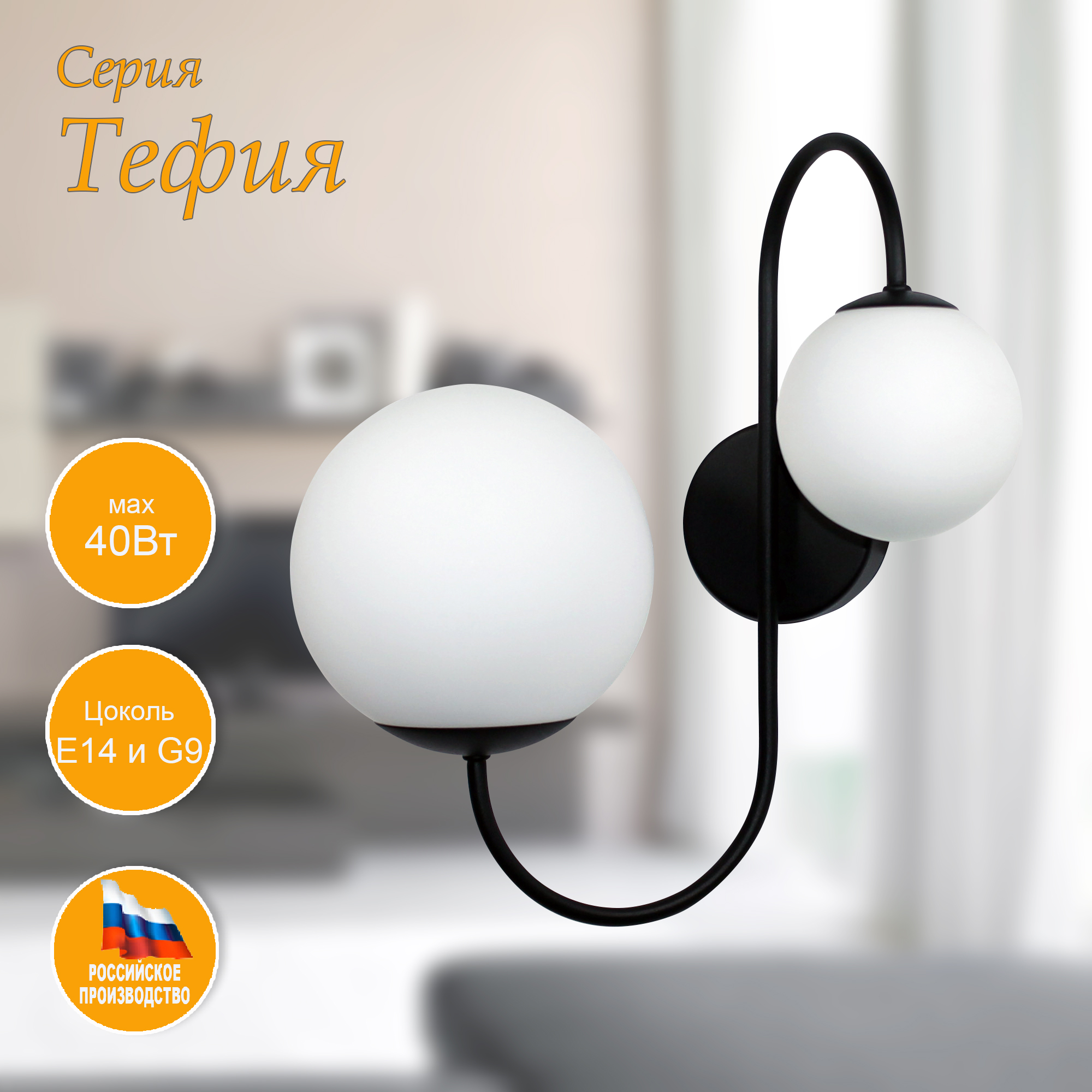 Потрясающая Бра из Коллекции " Тефия " отлично подойдет для установки в комнате, оформленной в современном стиле. Рекомендуемая площадь освещения - 5 м2. Источник света - лампы накаливания мощностью до 40 Вт, а также светодиодные лампы или энергосберегающие лампы. Цоколь лампы в светильнике Е14 в большом шаре и G9 в малом шаре. Плафоны выполнены из опалового стекла ручной работы - это позволяет получить мягкий и рассеянный свет . Узел крепления - на планку позволяет легко монтировать его на стену. Светильник дает максимум света и оптимально вписывается в интерьер и создает уют в помещении, будь то гостиная или спальня.Данную модель 1005405127 можно купить в интернет магазине 220svet.ru