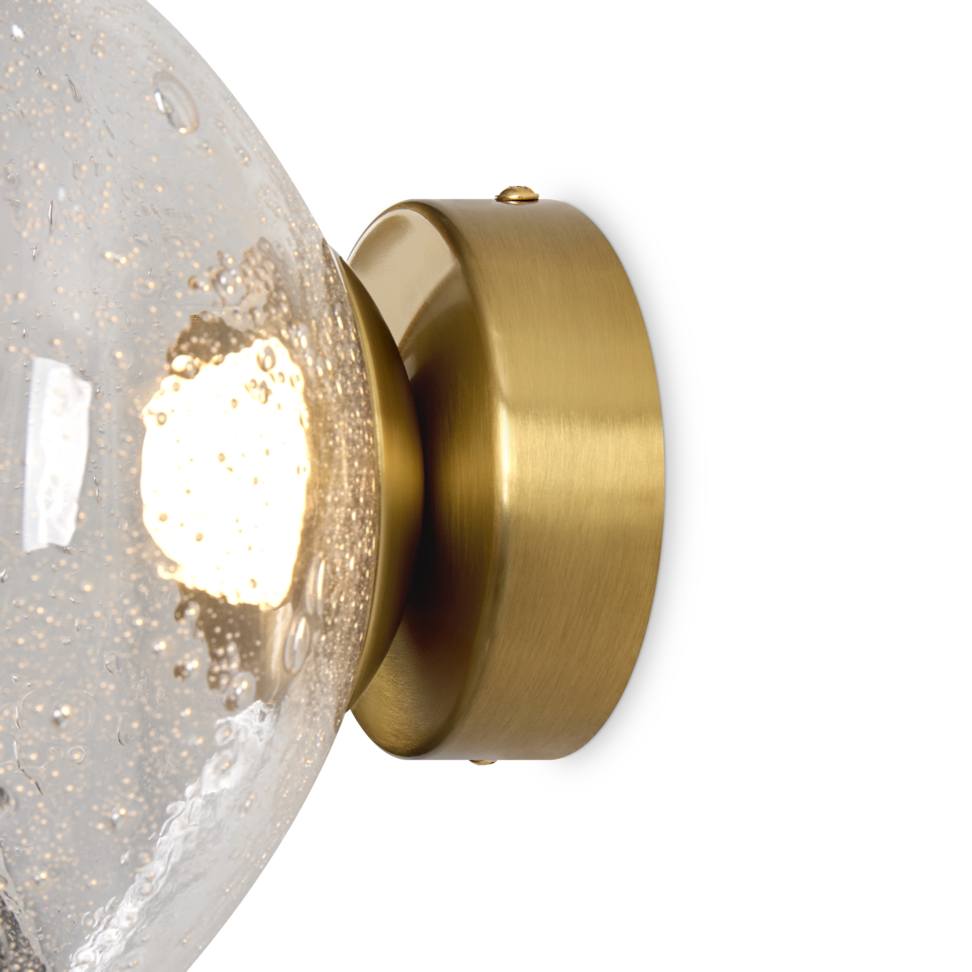 Арматура — металл. Стеклянные плафоны с пузырьками в трёх цветах: дымчатый, прозрачный, янтарный. Интегрированный LED источник света 3000К, Ra 80, угол 180°. Высота регулируется.