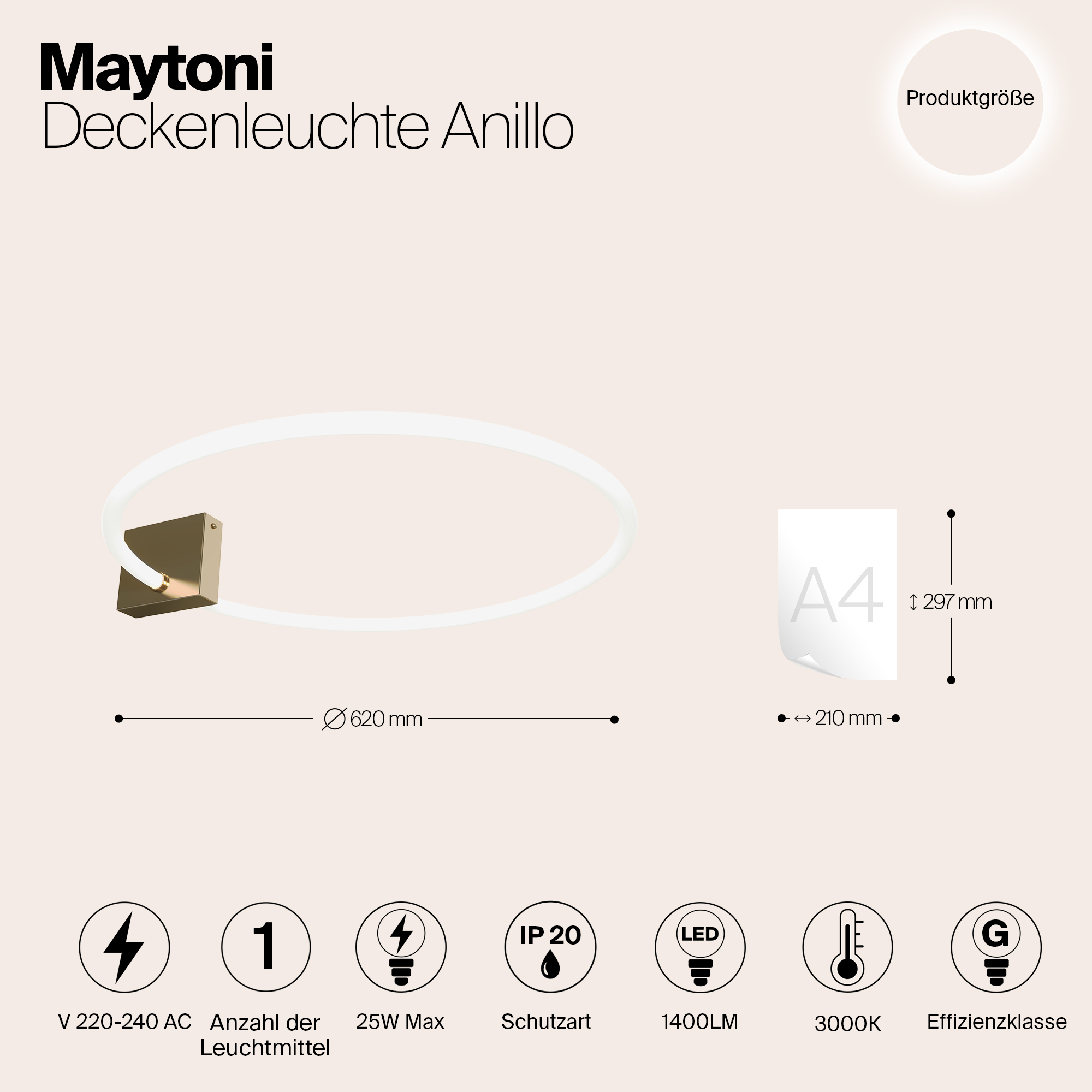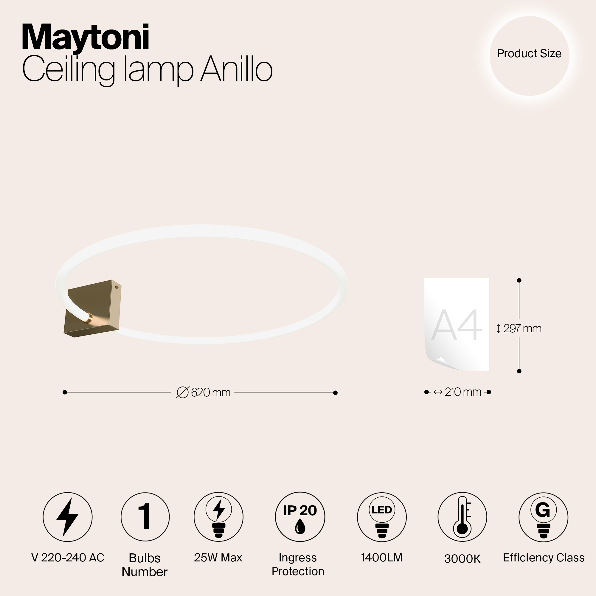 Мощность связана с величиной светового потока люмен (Lm), и от неё зависит яркостью лампы. - Общая мощность: 25 W