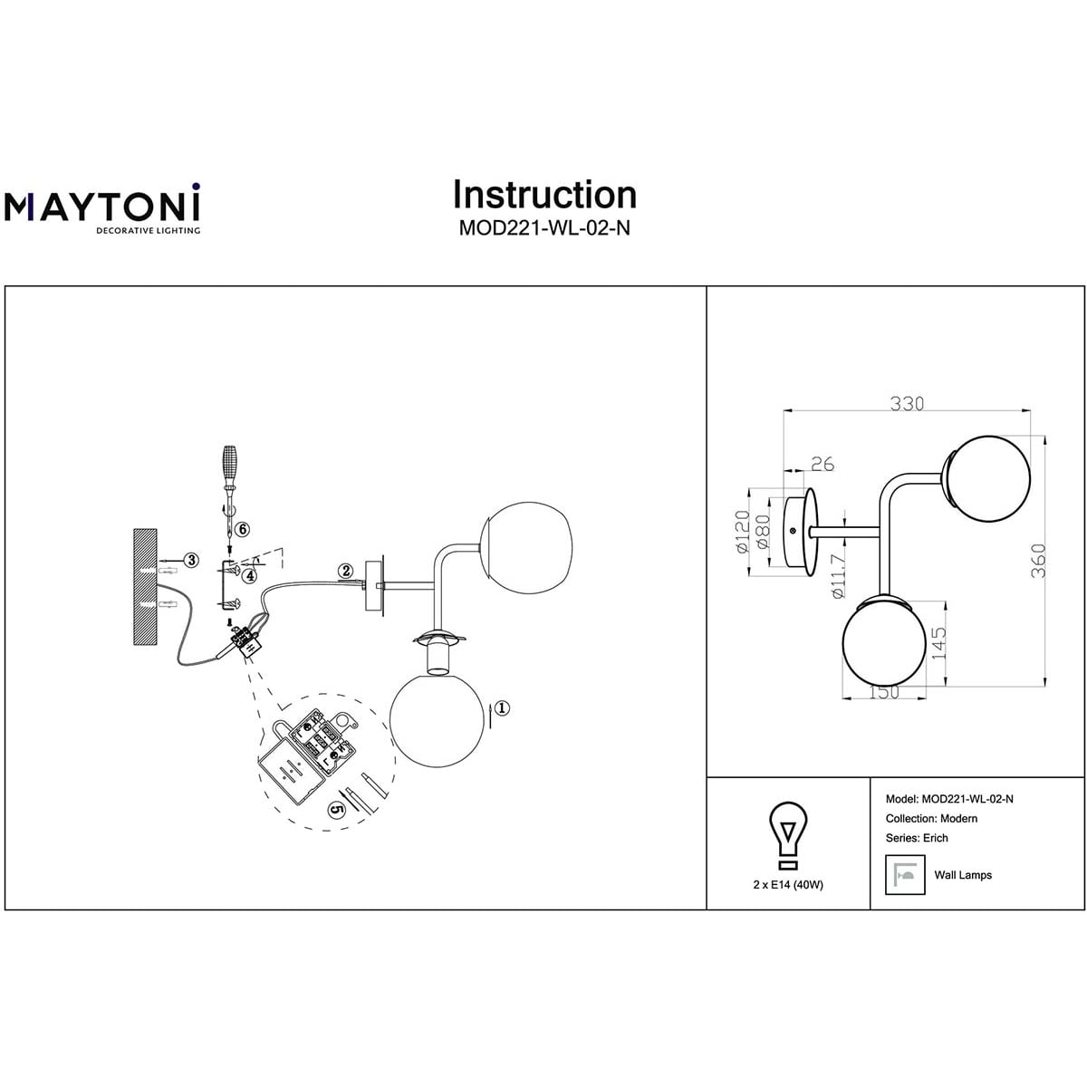 Купить "Бра Maytoni Erich MOD221-WL-02-N"