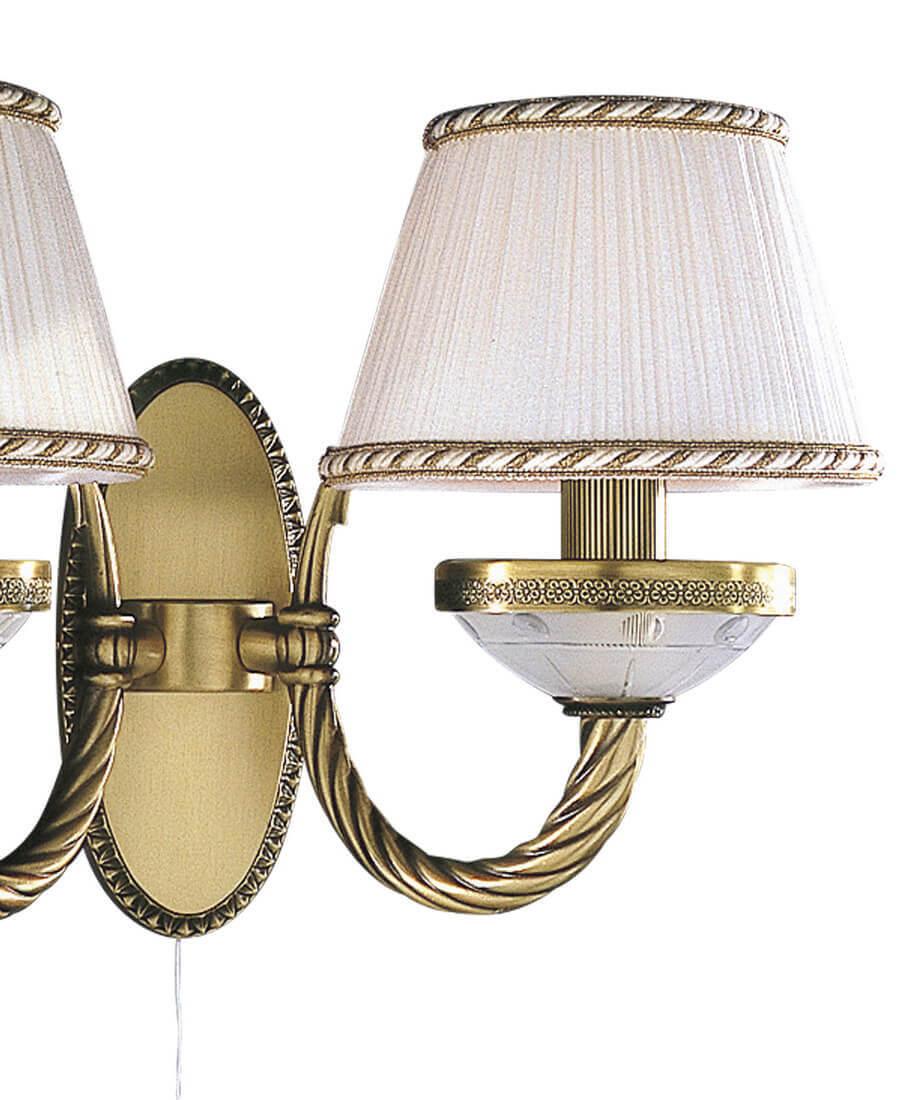 Бра Reccagni Angelo A 4660/2 Итальянского производсва – лучшее соотношение цена-качество. Этот светильник Классического стиля хорошо подойдет Для гостиной и придаст помещению мягкий и приятный свет. Плафоны белые из ткани. Арматура бронза из металла. Кол-во ламп - 2шт. Общая мощность 120W