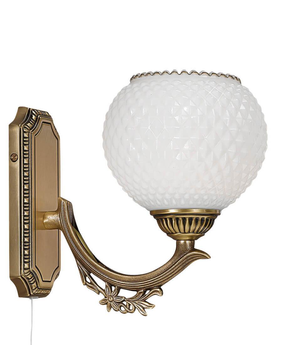 Бра Reccagni Angelo A 8650/1 Итальянского производсва – лучшее соотношение цена-качество. Этот светильник Классического стиля хорошо подойдет Для гостиной и придаст помещению мягкий и приятный свет. Плафоны белые из стекла. Арматура бронза из металла. Кол-во ламп - 1шт. Общая мощность 60W