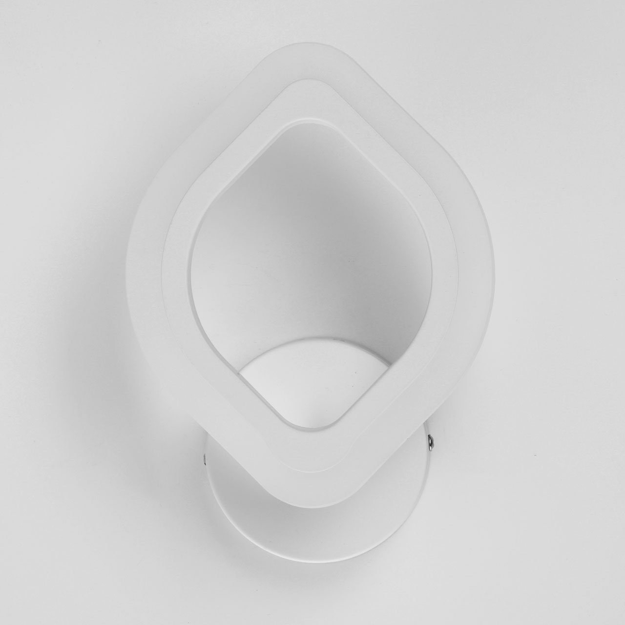 Металлическое основание настенного бра окрашено в белый цвет. Корпус плафона выполнен из сплава алюминия с цинком и окрашен в цвет основания. Светодиодные источники света закрыты белым матовым акрилом.