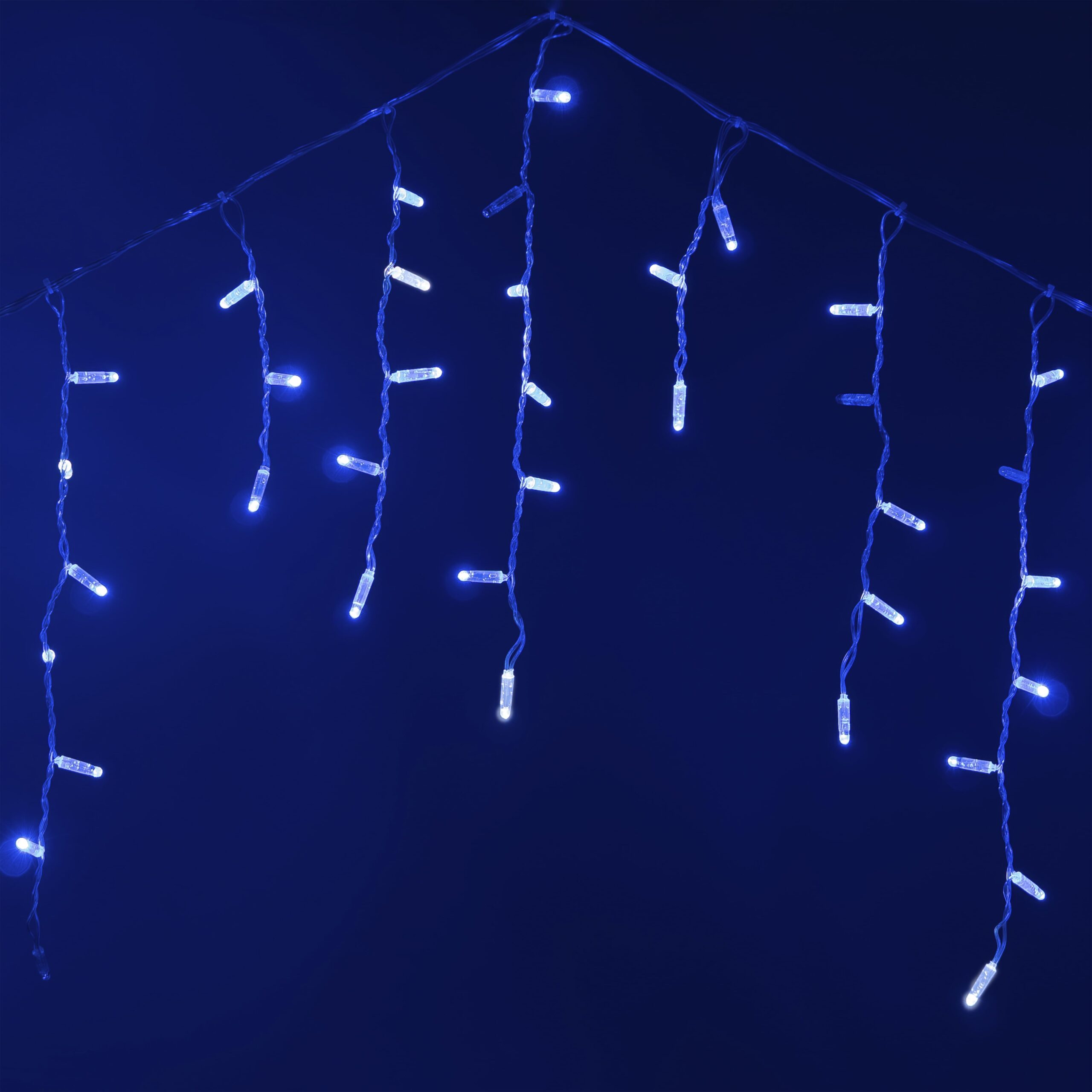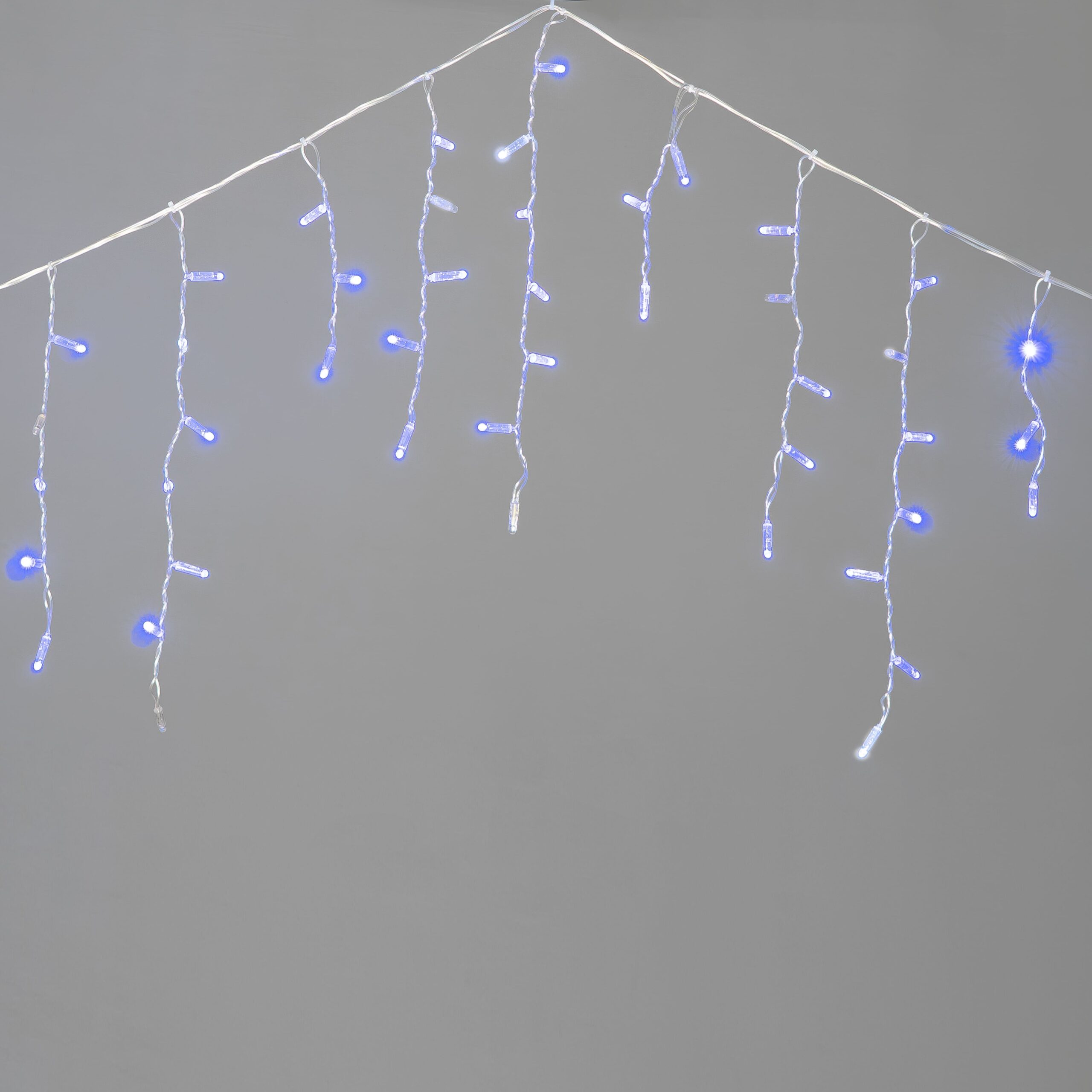 Купить "Гирлянда Бахрома с Колпачком 3,1 x 0,5 м Синяя с Мерцанием Белого Диода 200В, 120 LED, Провод Прозрачный ПВХ, IP65 LTC PIL120BLWCAP-10-2B"