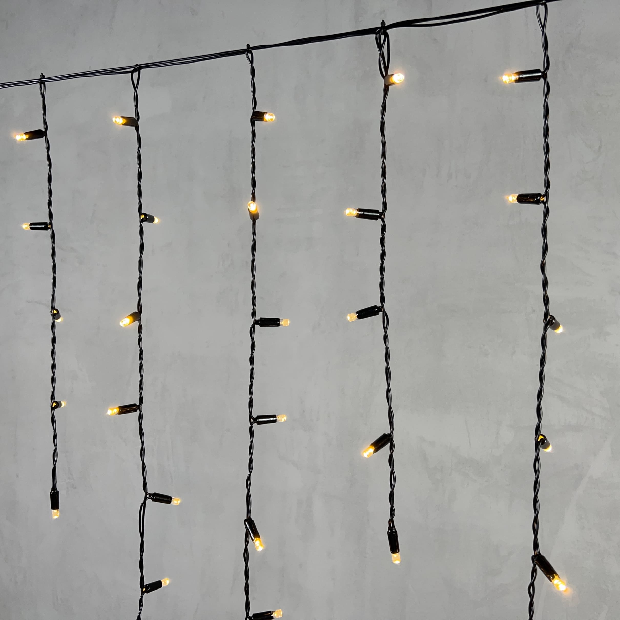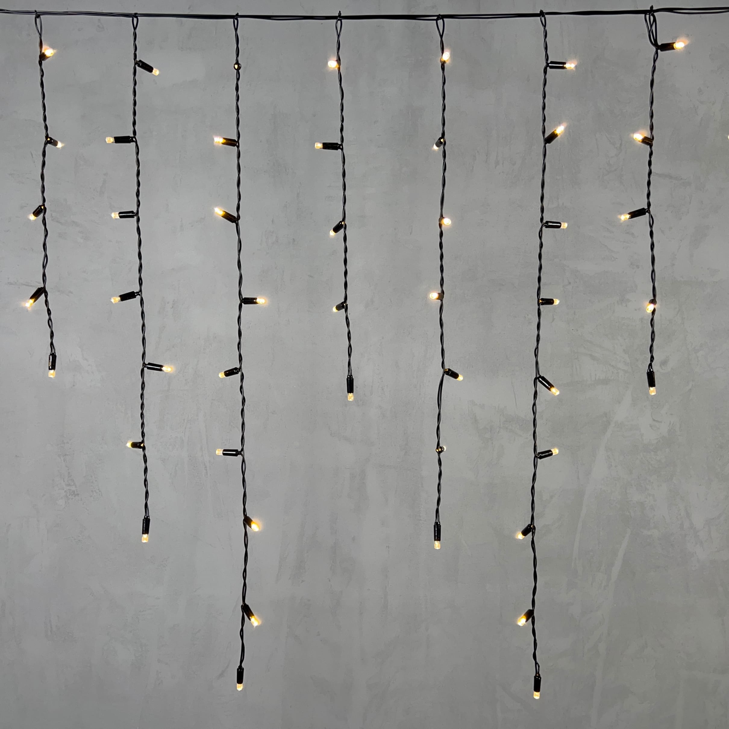 Купить "Гирлянда Бахрома с Колпачком 3,2 x 0,9 м Тепло-Белая 220В, 168 LED, Провод Черный ПВХ, IP65 LTC PIL180CAP-11-2WW"