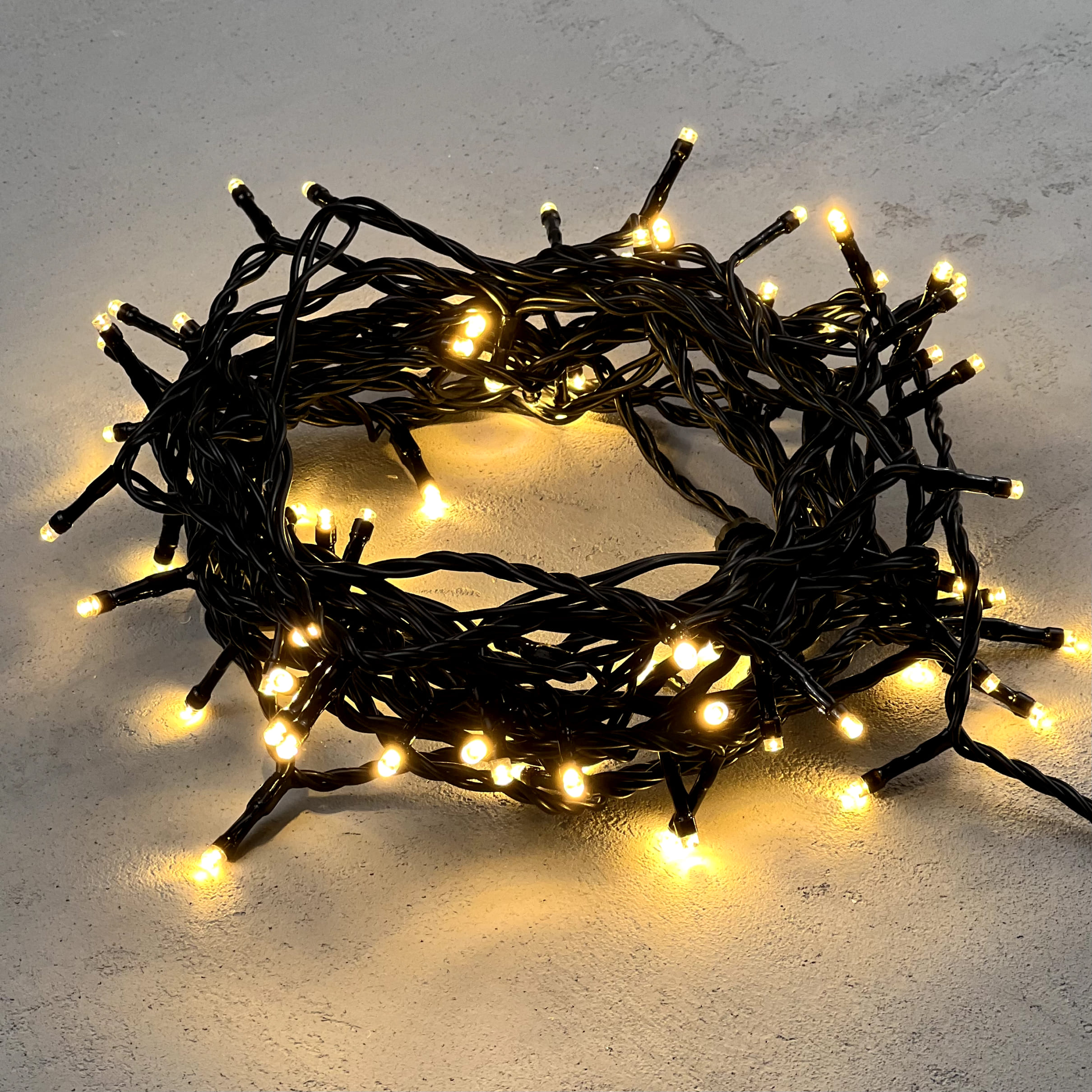 Купить "Гирлянда Нить 10м Тепло-Белая 24В, 100 LED, Провод Черный ПВХ, IP54 LTC PST100-11-1WW"