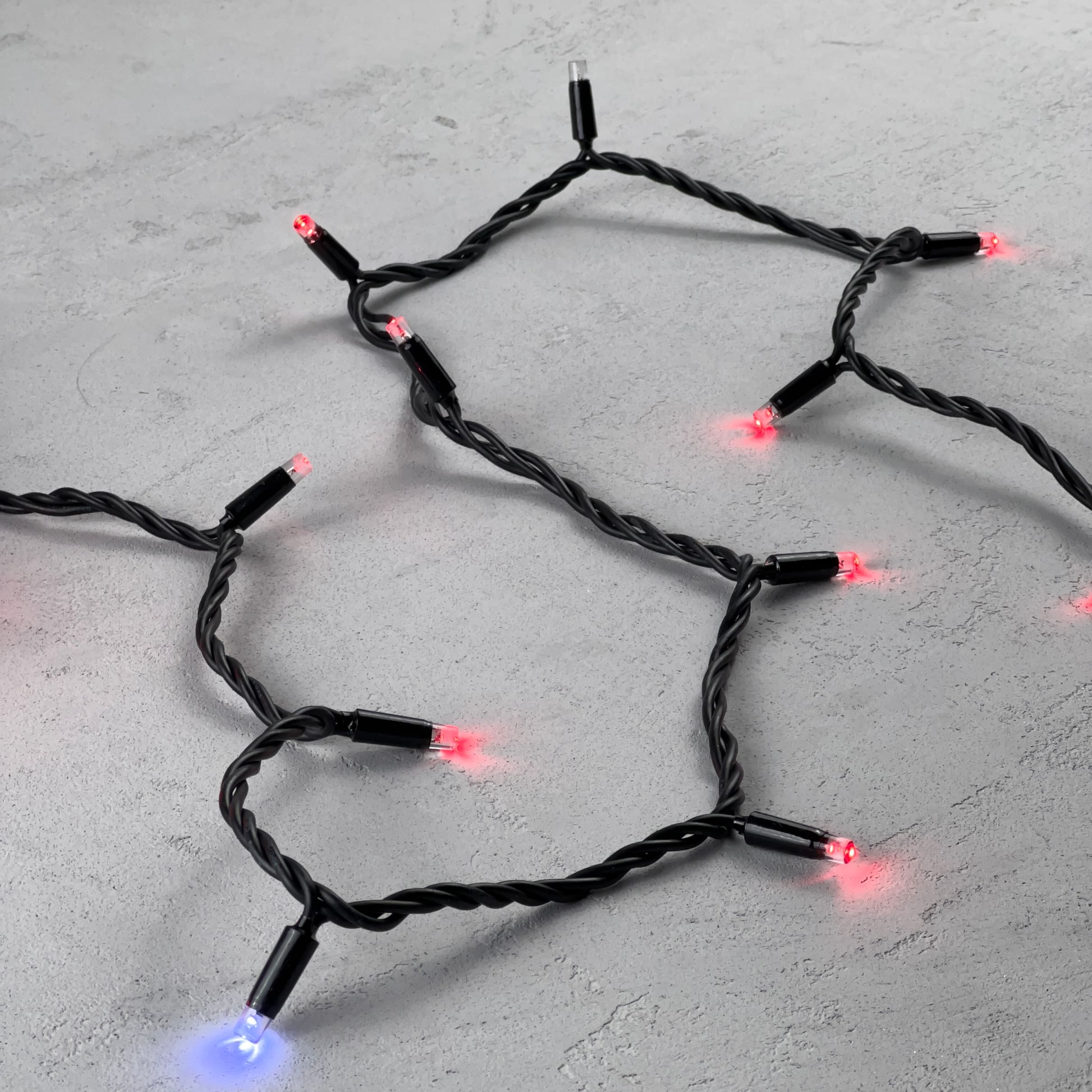 Купить "Гирлянда Нить 10м Красная с Мерцанием Белого Диода 220В, 75 LED, Провод Черный Каучук, IP65 LTC LL75BLW-1-2R"