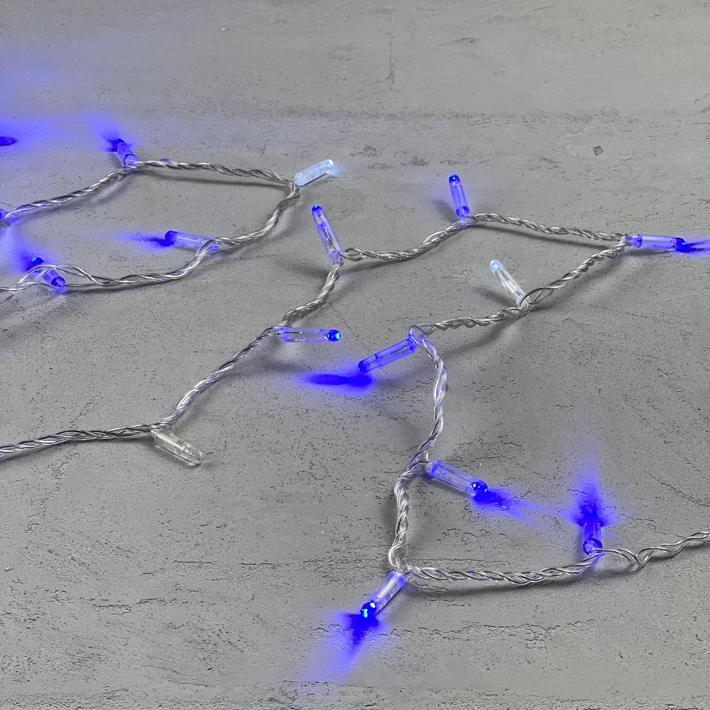 Купить "Гирлянда Нить с Колпачком 10м Синяя с Мерцанием Белого Диода 24В, 100 LED, Провод Прозрачный ПВХ, IP65 LTC PST100BLWCAP-10-1B"