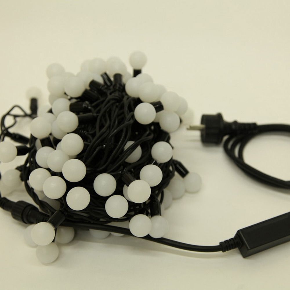Купить "Гирлянда Нить, ШАРИКИ 2.3см., 10м., 100 LED, холодный белый, без мерцания, резиновый черный ПВХ провод. 05-1979"