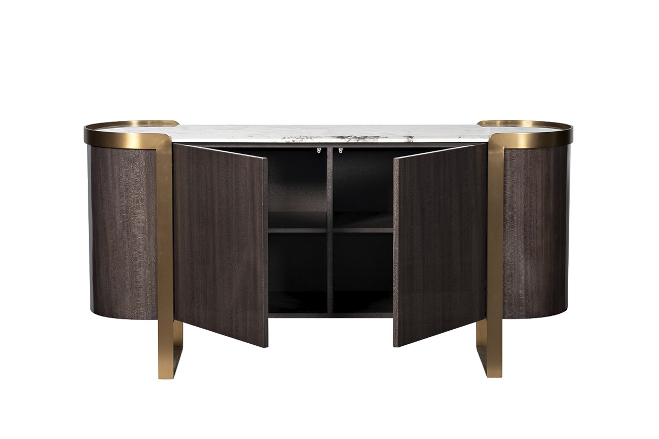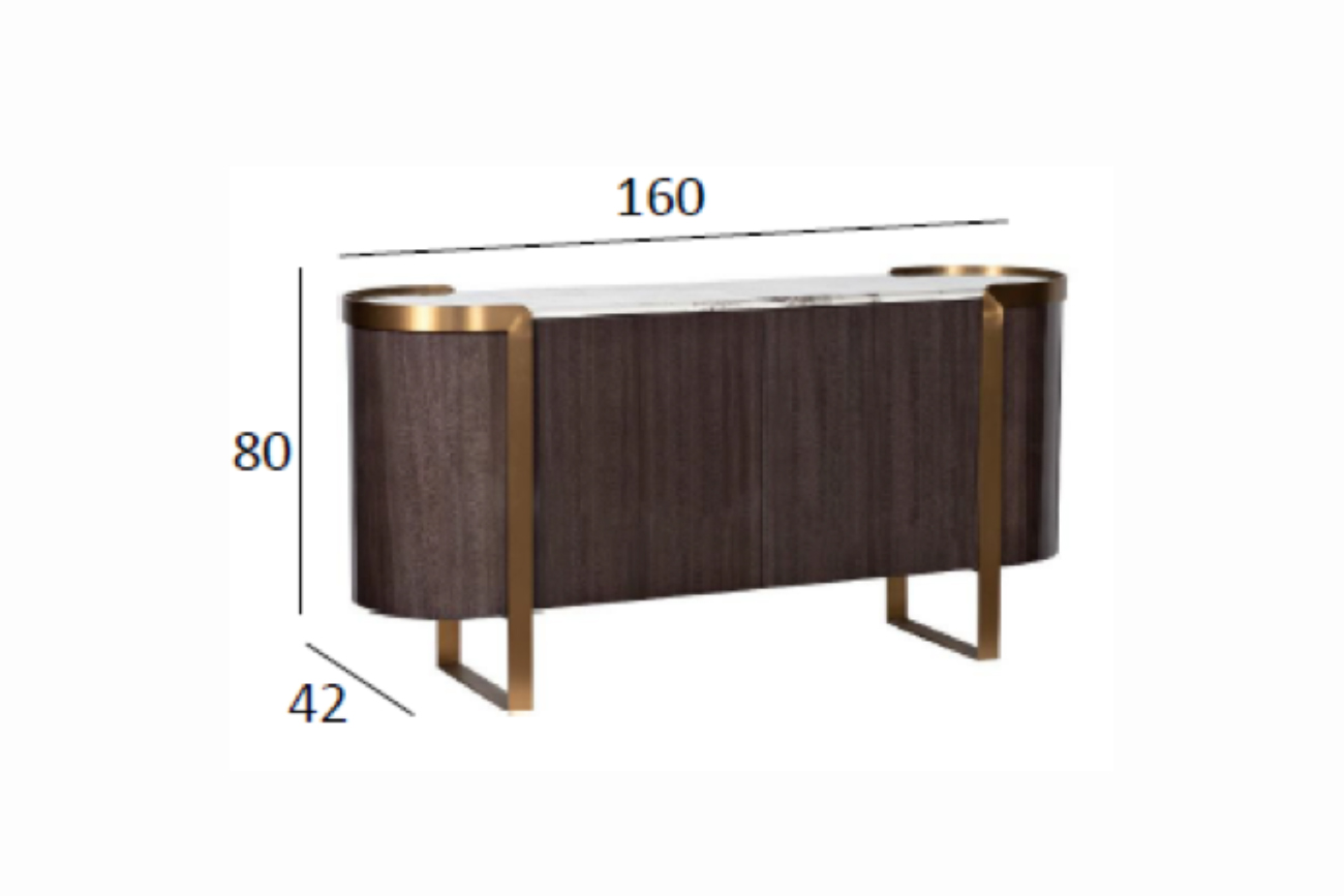 Комод из коллекции Sevilla, выполненный в изысканных дымчато-серых тонах, сочетает в себе самые последние тренды мебельного дизайна класса «люкс», отделку современными материалами с использованием шпона ценных пород дерева, стали цвета латунь, зашлифованной до сатинового блеска, и столешницей под мрамор. При изготовлении используется драгоценный шпон дерева лайсвуд. Это дерево отличается необычайно красивой древесиной с шелковистым блеском и характерным рисунком, напоминающим змеиную кожу. Элегантные округлые формы, благородство мраморной фактуры, высокое качество исполнения делает предмет коллекции образцовой мебелью для современной обстановки. Комод гармонично дополнят тумбочка арт. 58DB-NS20001, консоль арт. 58DB-CST2005, стол арт. 58DB-CST20050 и стеллаж арт. 58DB-SH20025 из этой же коллекции.