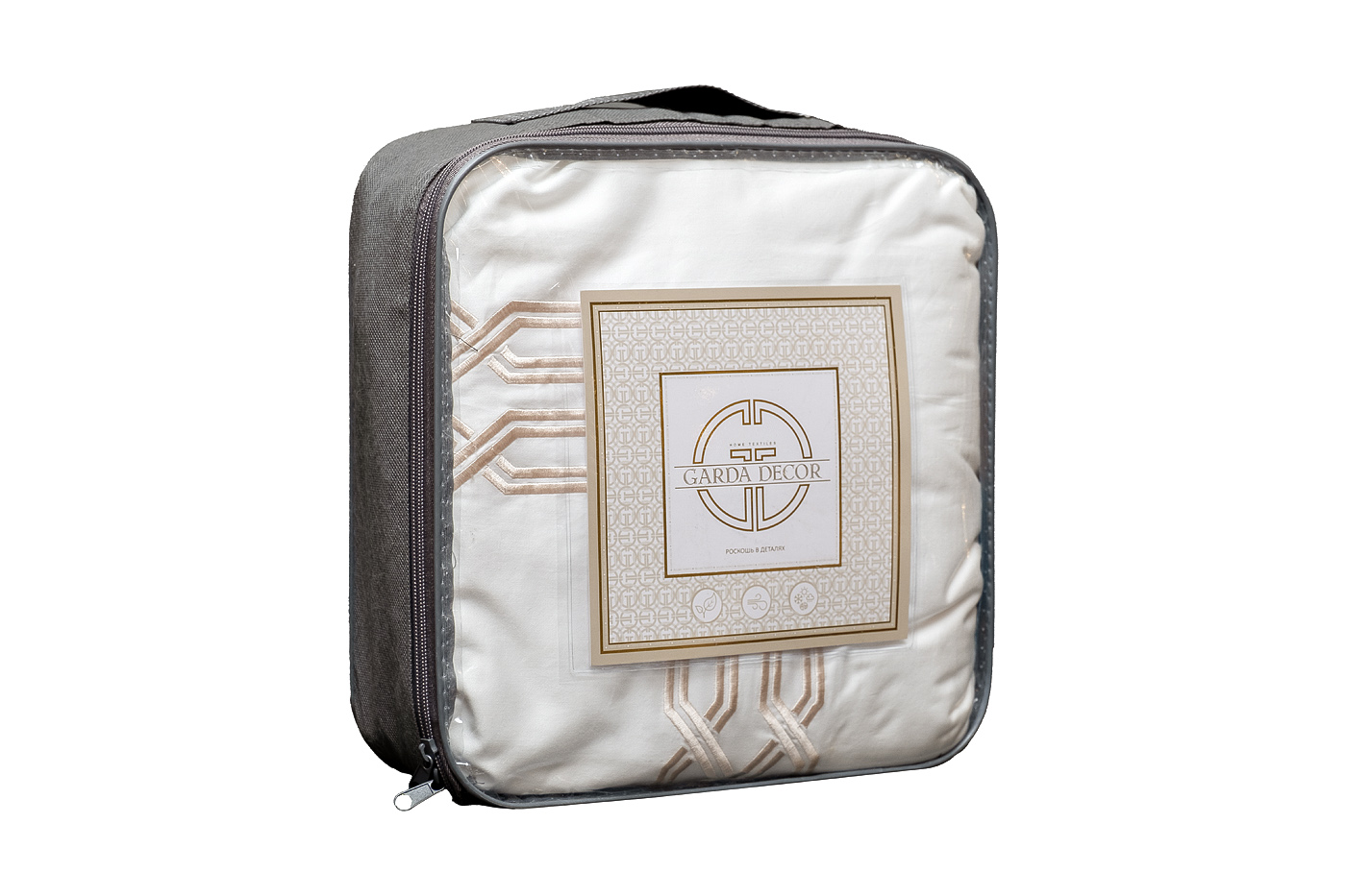 Классический комплект «Паллада» изготовлен из 100% хлопка-сатина высокой плотности 400ТС. Белое белье украшает изящная золотистая вышивка, которая обрамляет пододеяльник по периметру, а на наволочках представлен только с одной стороны. Модель привлекает внимание красивым контрастом между белой тканью и орнаментом оттенка античного золота. Вышивка на постельном белье - дорогой элемент, который придает белью более выраженный вид, создавая объем и, подчеркивая, ценность постельного белья. Оригинальная геометрия орнамента подойдет и для современного интерьера, и для эффектного стиля ар-деко, и для классического дизайна. В данный комплект входят: Пододеяльник 220*240, наволочка 50*70-2 шт и простыня 270*280. Уход: Машинная стирка при максимальной температуре 40С, мягкий режим. Стирать моющими средствами для цветных тканей. Не отбеливать. Барабанная сушка возможна, обычная температура. Гладить с изнаночной стороны при максимальной температуре утюга. Сухая химчистка запрещена.