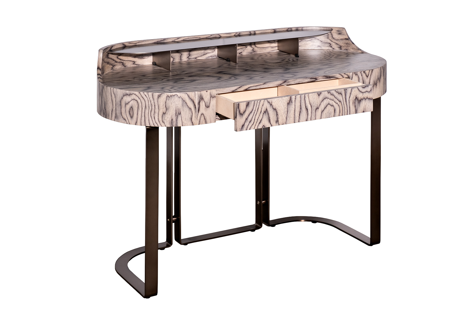 Консоль светлый шпон — изящный акцент для современного интерьера, где важны пропорции и благородные материалы. Эта консоль из светлого шпона привлекает выразительной текстурой древесины и мягкими округлыми линиями, создающими ощущение визуальной лёгкости. Тонкое металлическое основание подчёркивает архитектурный силуэт и добавляет конструкции устойчивость без утяжеления образа. Дизайнерская консоль в светлом шпоне гармонично вписывается в интерьеры в стиле modern luxury, современная классика и минимализм, дополняя пространство элегантным и функциональным элементом.