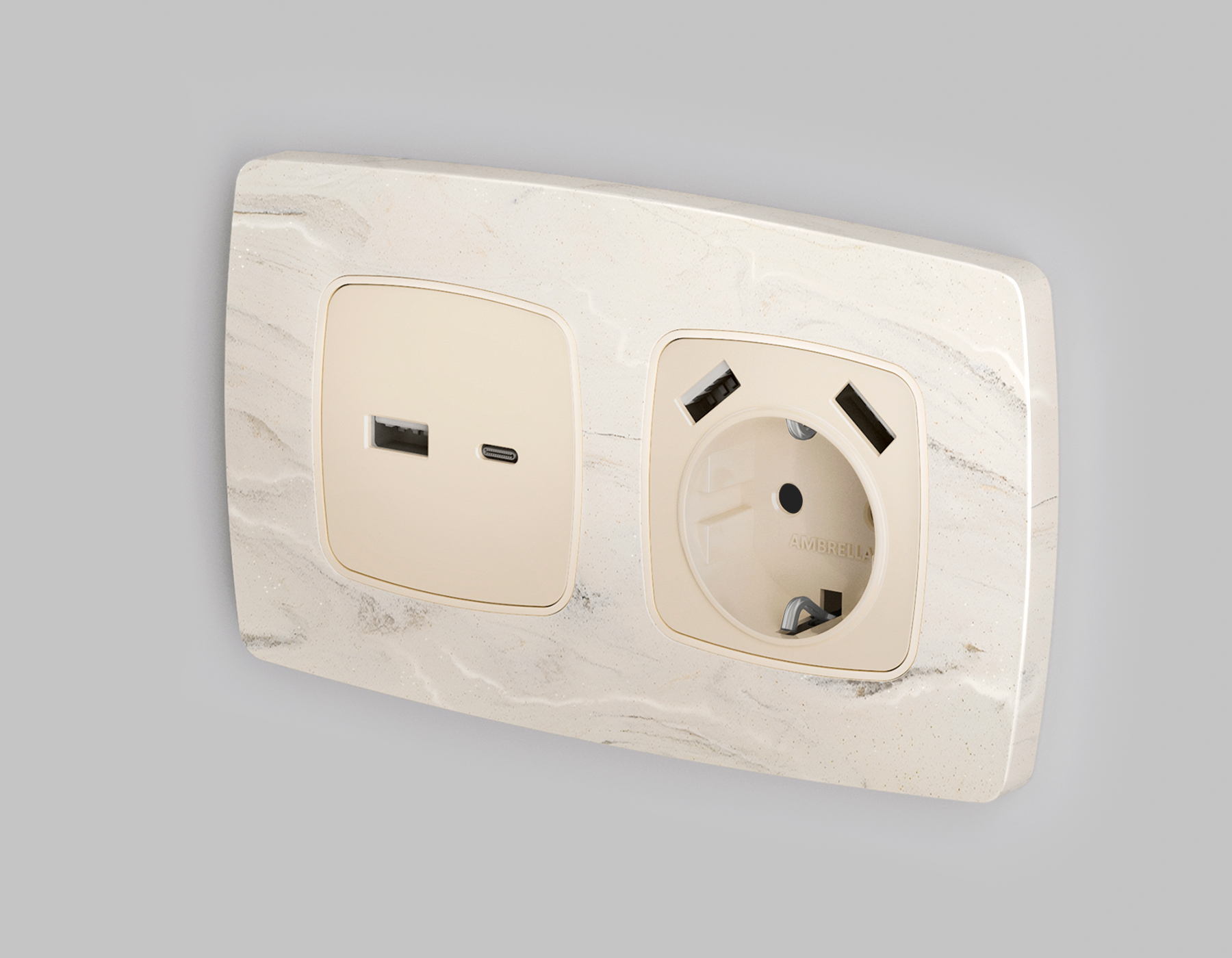 Купить "Лицевая панель для розетки со шторками 2USB A+A Ambrella Volt Quant OMEGA OP3090"