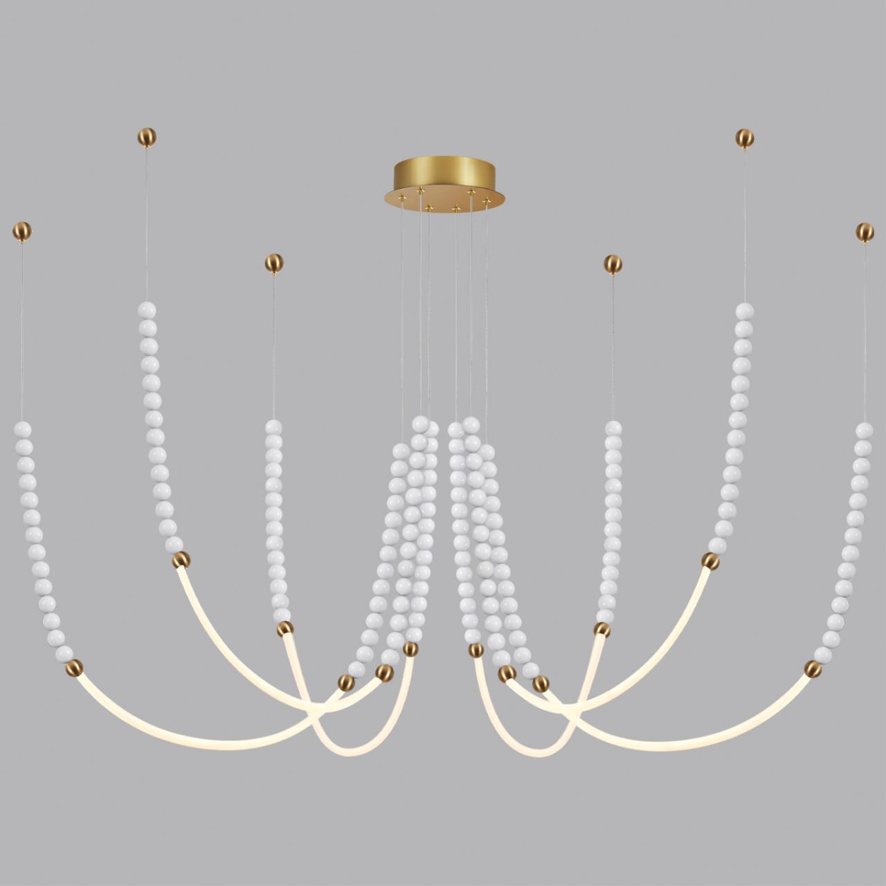 Monella - оригинальная форма большой серии светильников в легком игривом дизайне с использованием белых полированных шариков из акрила. Благодаря универсальности белого цвета линия впишется в любую стилистику и любую цветовую гамму интерьера. В светильнике используются оргинальные фиксаторы к потолоку в виде россыпи маленьких металлических шариков, которые можно расположить на любом удалении от центра светильника и таким образом, создать свою форму.