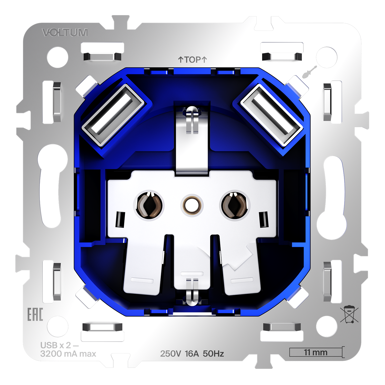 Купить "Механизм розетки с заземлением и защитными шторками 16А, с USB A+A, S70 Voltum S70 VLS0404M"