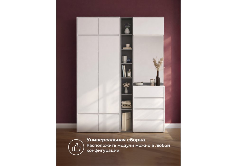 Купить "Модульная прихожая комплектация 4 Woodville Роут белый / графит 620675"