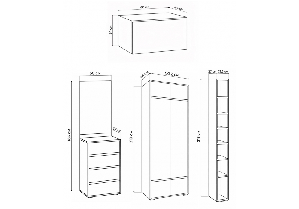 Материал каркаса - ЛДСП; Ширина - 163,4; Глубина - 44; Высота - 217,6;