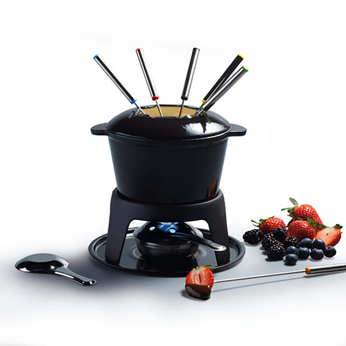 Купить "Набор для приготовления фондю (кастрюля, горелка, вилки 6шт.) чугунный покрыт BLACK эмалью KC Kitchen Craft"