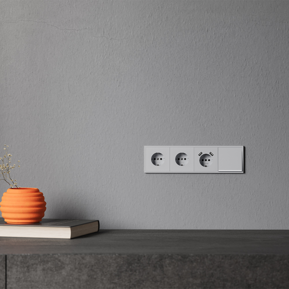 Купить "Накладка для розетки с заземлением и защитными шторками Voltum S70 VLS000716 (серый)"