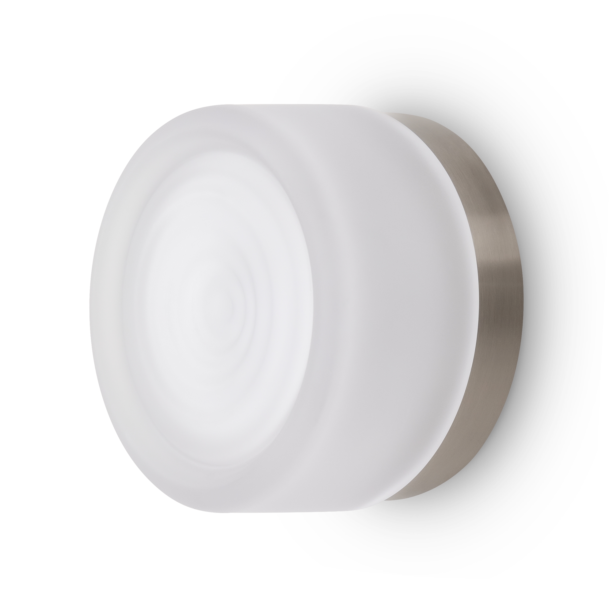 Металлическая арматура в цвете никель в трех рельефных основаниях. Плафоны, выполненные в приглушенно пшеничном и янтарном оттенках, доступны в двух размерах. LED источник света 2400К/2550К/3000K.