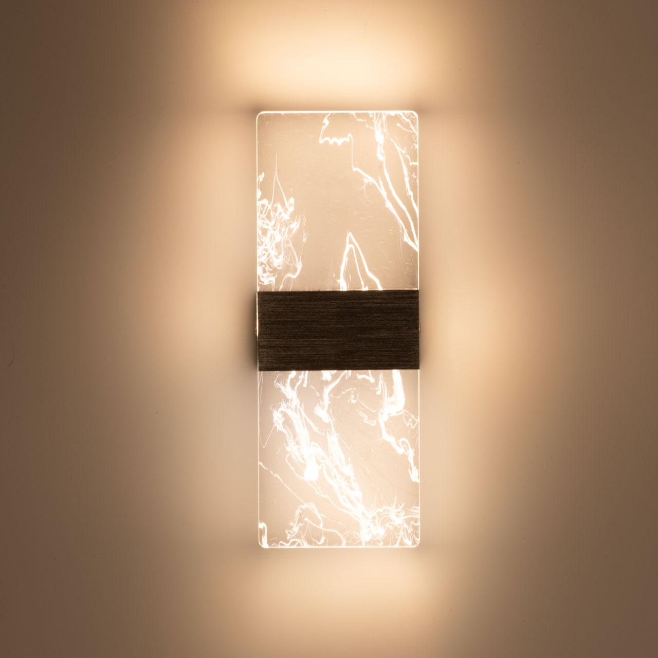Металлическое основание настенного бра окрашено в цвет серебра. Основа плафона выполнена из сплава алюминия с цинком, обработана по технологии брашинг и оксидирована. Настенное бра декорировано полупрозрачным акриловым плафоном с декоративными белыми разводами.