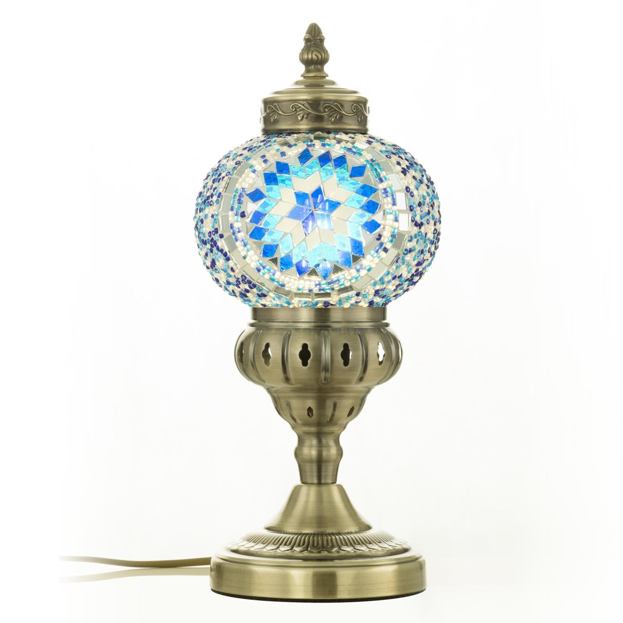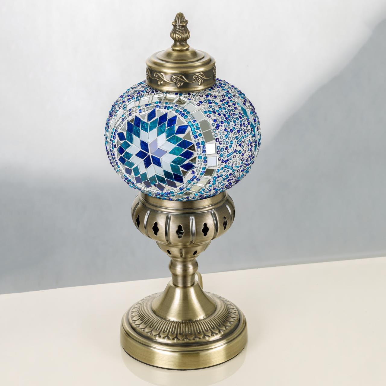 Погрузитесь в атмосферу таинственного Востока с настольным светильником Citilux Каир CL419816! Металлический корпус цвета благородной бронзы украшен изысканной чеканкой, а плафон в форме шара, декорированный стеклянной мозаикой с сине-голубыми оттенками, создаёт мягкое свечение, наполняющее пространство чувством свежести и гармонии.