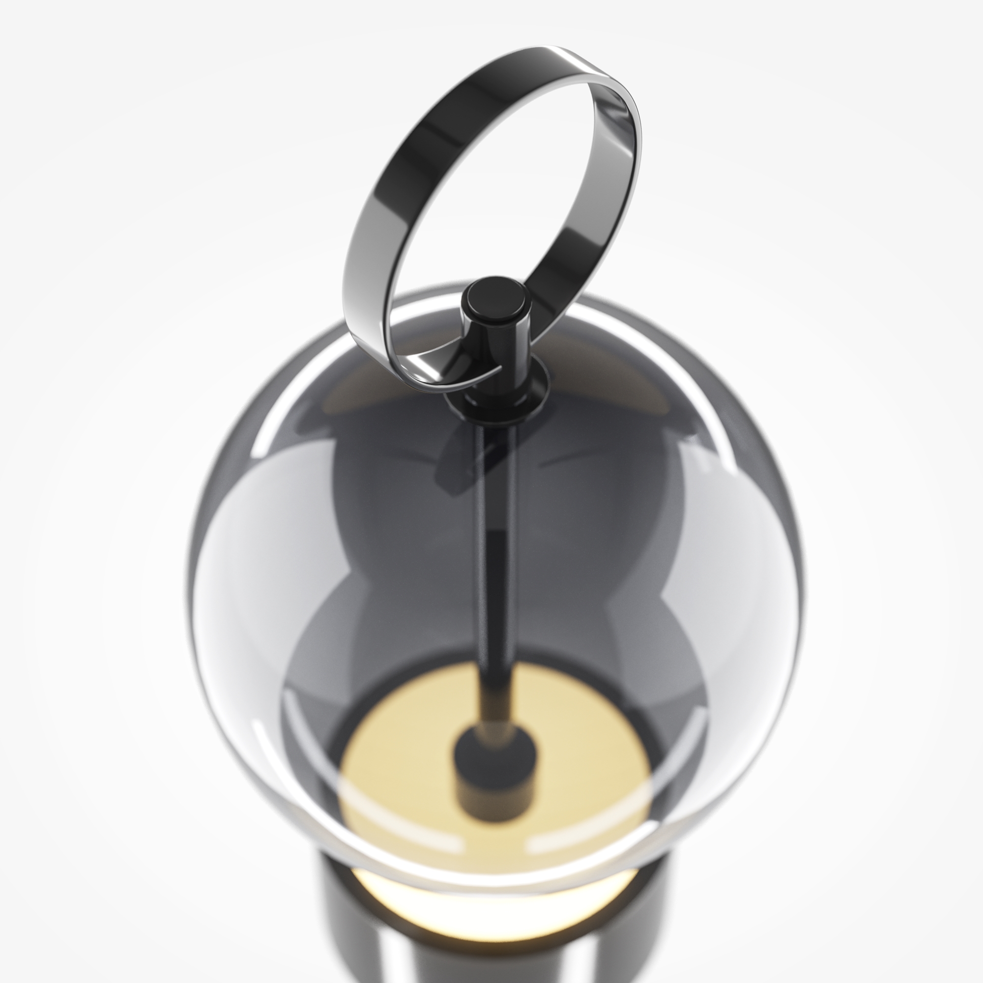 Серия включает подвесной светильник, бра, напольный и портативную модели. Стеклянные плафоны с зеркальным градиентом, черная глянцевая арматура из металла. LED-источник (3000K) скрыт матовым рассеивателем. Конструктивные особенности: магнитные потолочные чаши у подвесов и магнитное основание у бра обеспечивают монтаж без видимого крепежа. Напольный и аккумуляторный светильники диммируются при длительном удержании кнопки. Серия отмечена премиями Red Dot и A’design за инновационный дизайн.