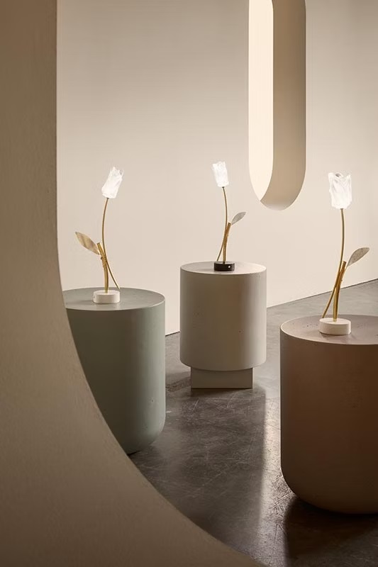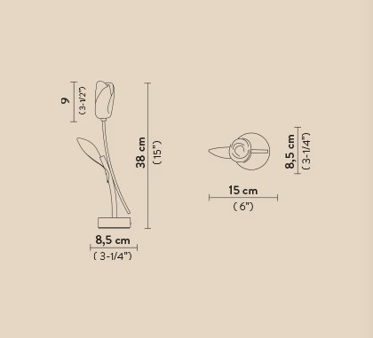 Образный, элегантный, невесомый. Tulip буквально украшает ваш стол элегантным цветком, вылепленным вручную по методике Slamp, что делает каждый из них уникальным. Основание черного цвета, стержень из анодированного алюминия с листом из драгоценного золота с кракле сбоку, украшающим цветок.