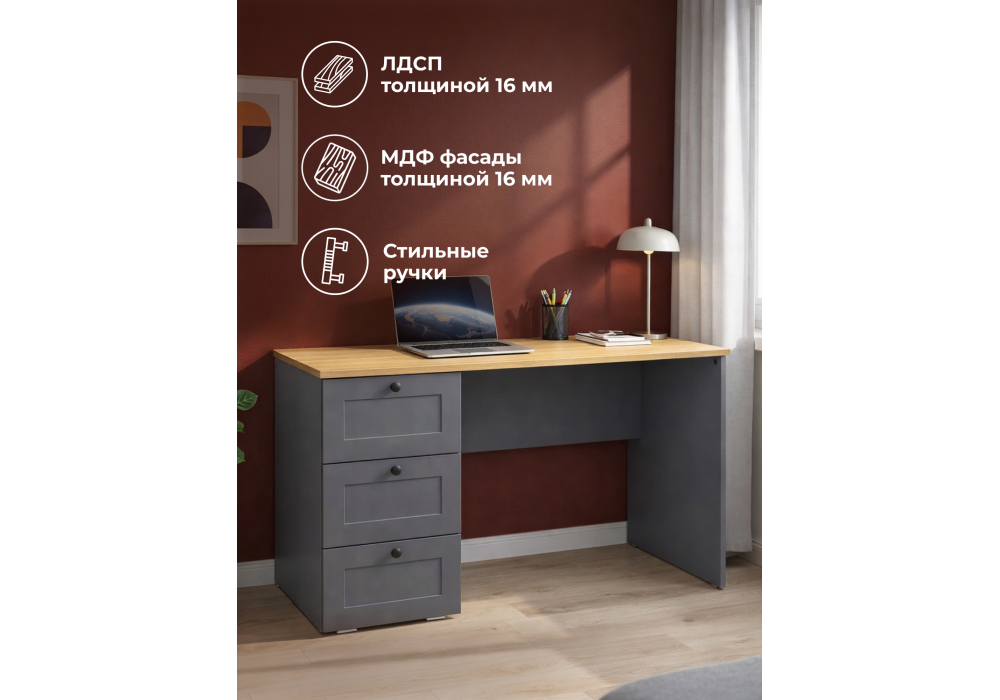 Письменный стол Woodville Опра серый графит / дуб золотой craft 676811 в Димитровграде