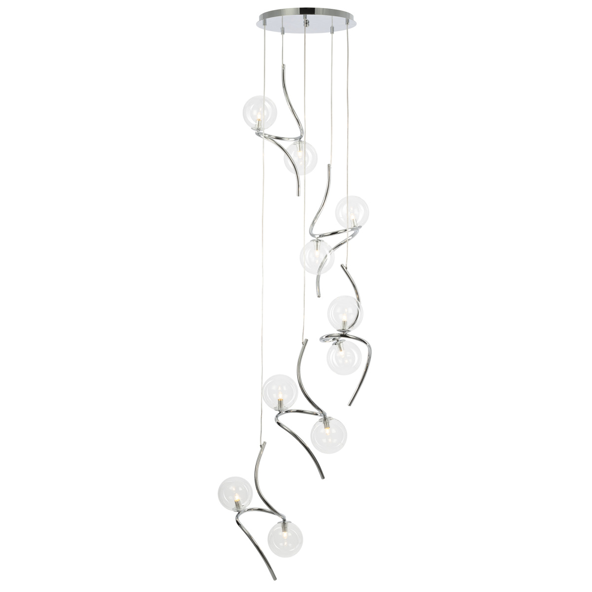 Каскадная дизайнерская люстра CL206091 производитель Дания , бренд Citilux относится к коллекции Vansa выполнена в современном стиле – это идеальное дополнение для вашего интерьера. Металлический корпус в глянцевом хроме придает ей стильный и элегантный вид. Основание светильника круглой формы, подвесы с изящно изогнутой центральной частью создают впечатление легкости и гармонии. Плафоны-шары из кристально прозрачного стекла придадут вашему пространству неповторимый шарм и прекрасно рассеют свет.В изделии 10 ламп с цоколем G9 максимальной мощностью для галогенных ламп 40 Вт, светодиодные лампы можно устанавливать более яркие. Высота подвесного светильника регулируется, что позволяет вам настроить его подходящим образом для помещений с высокими, стандартными и низкими потолками. Благодаря своей универсальности, эта модель идеально подойдет для освещения просторной гостиной, аккуратной спальни, уютной кухни, популярного кафе или модного ресторана. Купить модель CL206091 спешите в интернет магазине 220svet.ru