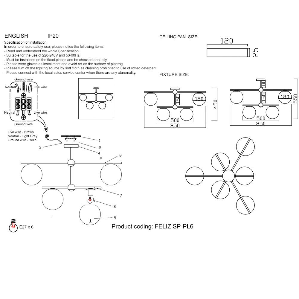 - Количество ламп: 6 шт
