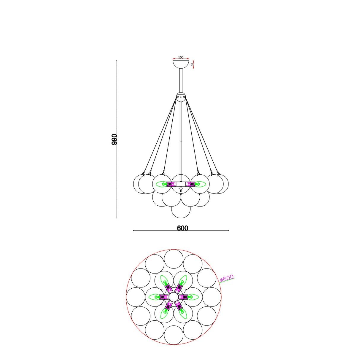 - Форма плафона: Шар