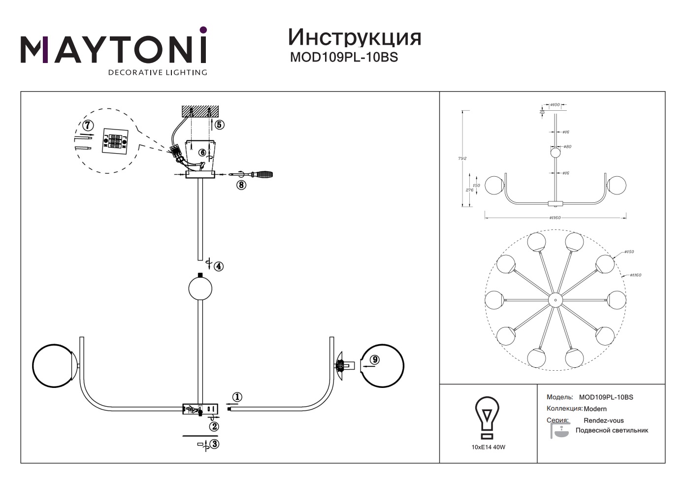 Подвесная люстра Maytoni Rendez-Vous MOD109PL-10BS – это не просто элемент освещения, а настоящий предмет искусства, который гармонично впишется в любой интерьер, будь то классический или современный стиль.