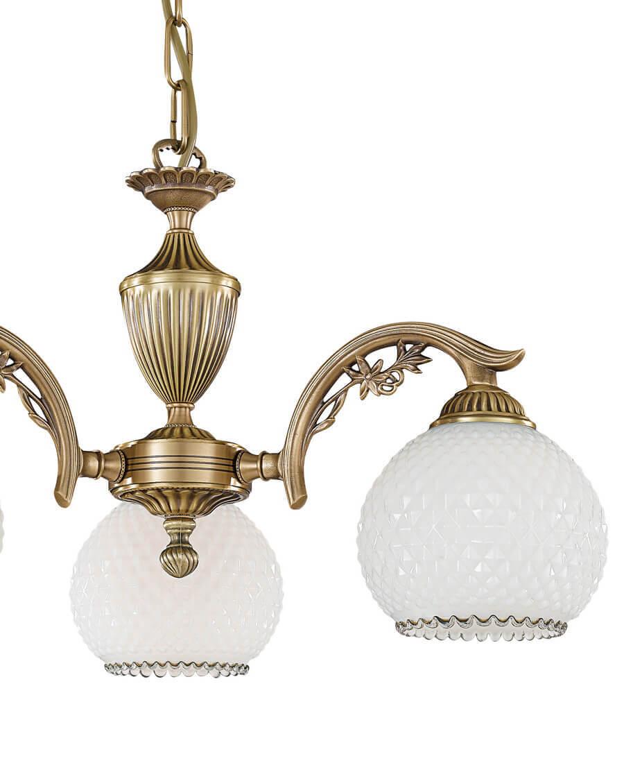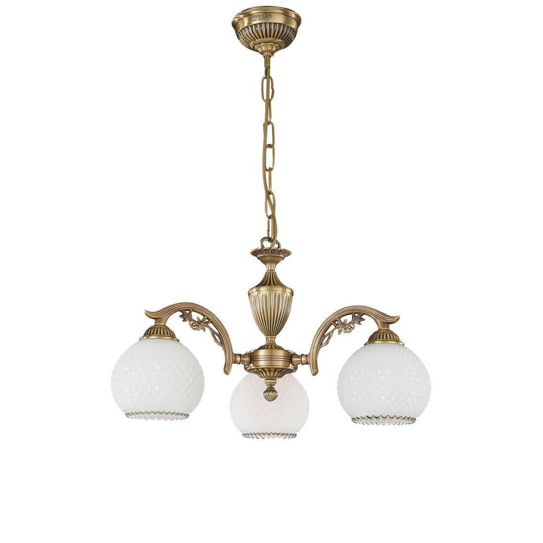 Подвесная люстра Reccagni Angelo L 8600/3 Итальянского производсва – уникальное сочетание высокого качества и удивительных фактур. Этот светильник Классического стиля хорошо подойдет Для гостиной и придаст помещению мягкий и приятный свет. Плафоны белые из стекла. Арматура бронза из металла. Кол-во ламп - 3шт. Общая мощность 180W