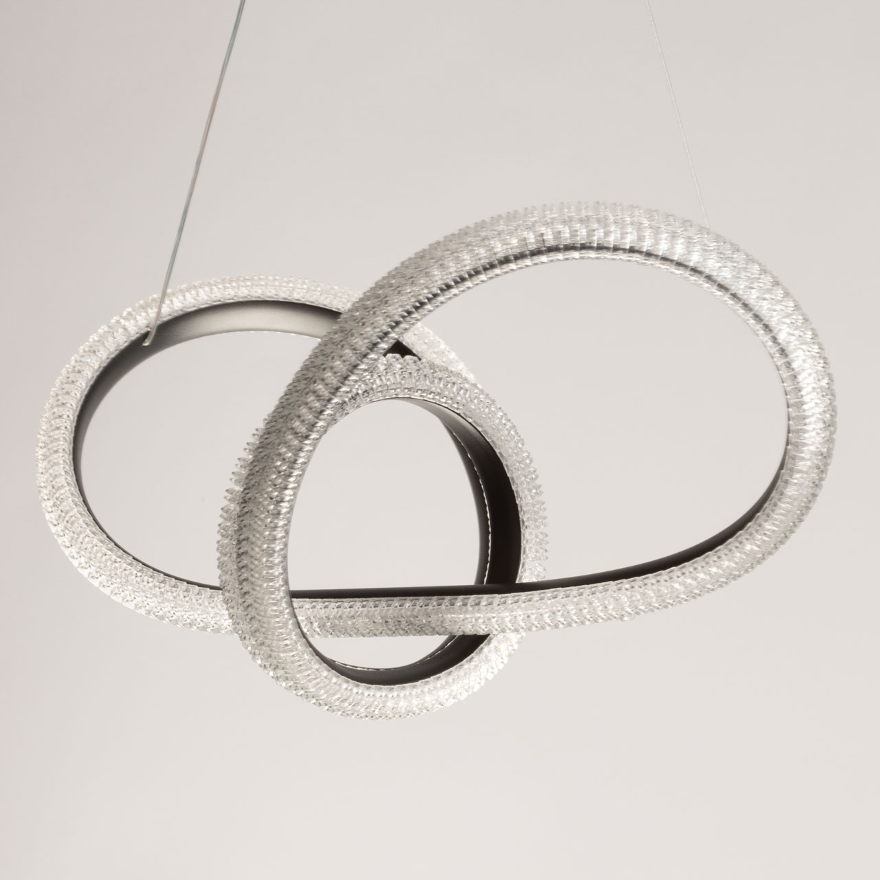 Металлическое основание светильника окрашено в черный цвет. Светодиодные источники света закрыты белым фактурным акрилом.