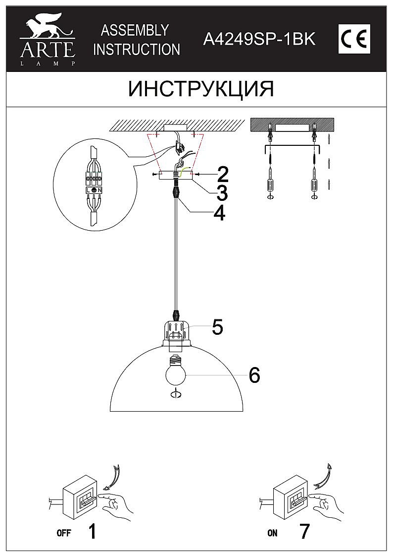 Купить "Подвесной светильник Arte Lamp Eurica A4249SP-1BK"