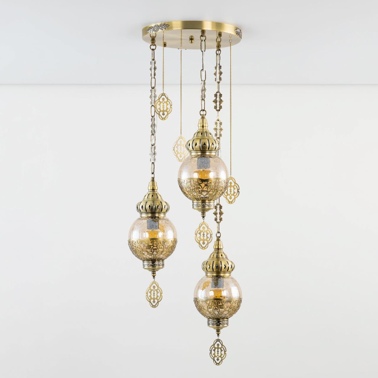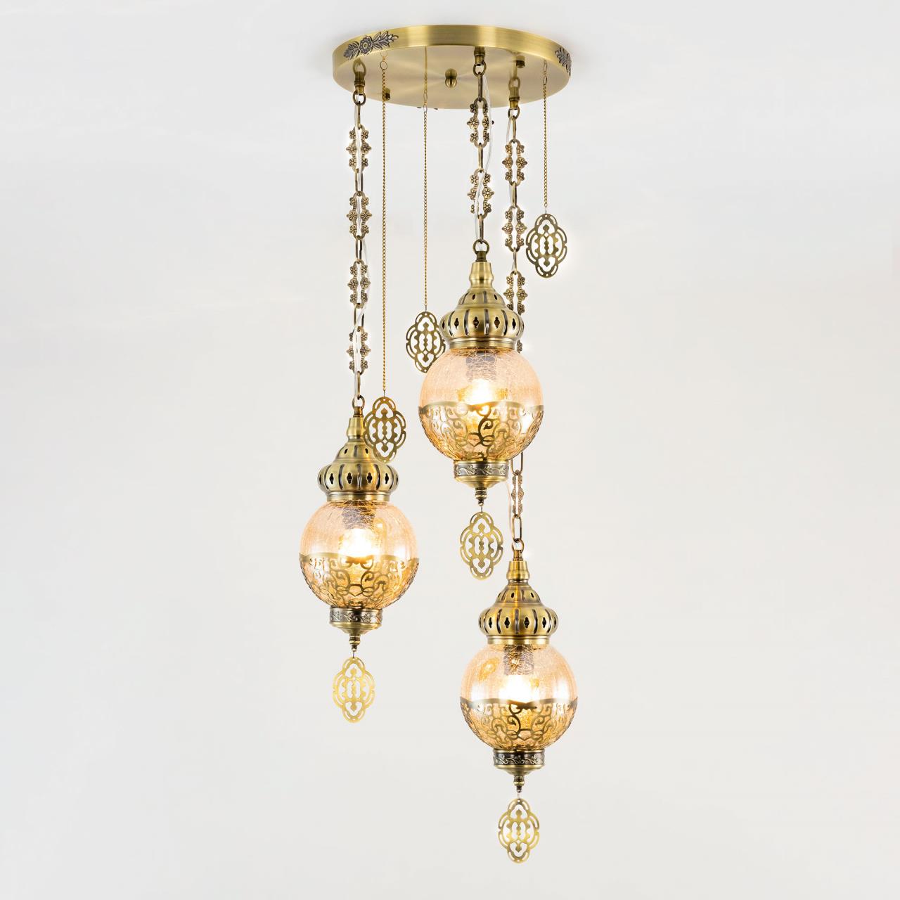 Восточный каскадный светильник CL419133 от производителя Citilux принадлежит к коллекции Каир с тремя подвесными плафонами. Корпус металлический, цвет бронза. Плафоны в форме шара, изготовлены из прозрачного стекла медового оттенка, украшены декоративными, ажурными элементами. В изделии используются лампы с цоколем Е27, максимальной мощностью для ламп накаливания 75Вт. Светодиодные лампы можно устанавливать более яркие. Модель подходит для всех типов потолков, в том числе натяжных. Тип крепления – планка. Светильник Каир CL419133 прекрасный вариант для атмосферного освещения интерьеров квартир и загородных домов, выполненных в восточном стиле. Это великолепное решение при оформления уютных кафе, баров и ресторанов , страна бренда Дания . Купить модель CL419133 спешите в интернет магазине 220svet.ru