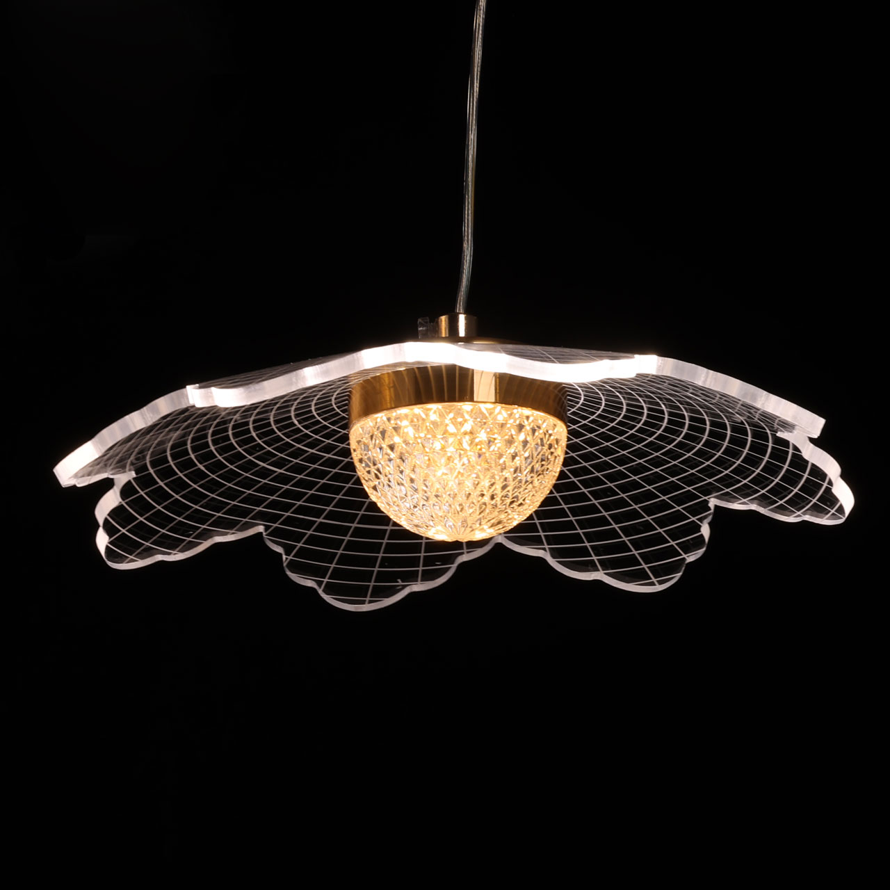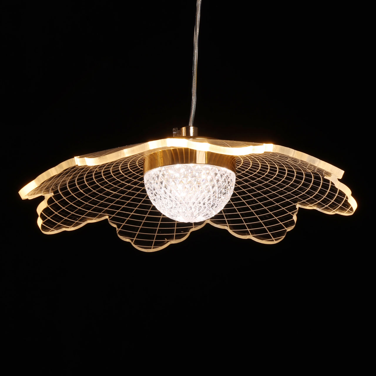 Металлическое основание светильника гальванизировано в цвет золота. Корпус плафона выполнен из сплава алюминия с цинком. Плафоны выполнены из прозрачного акрила.
