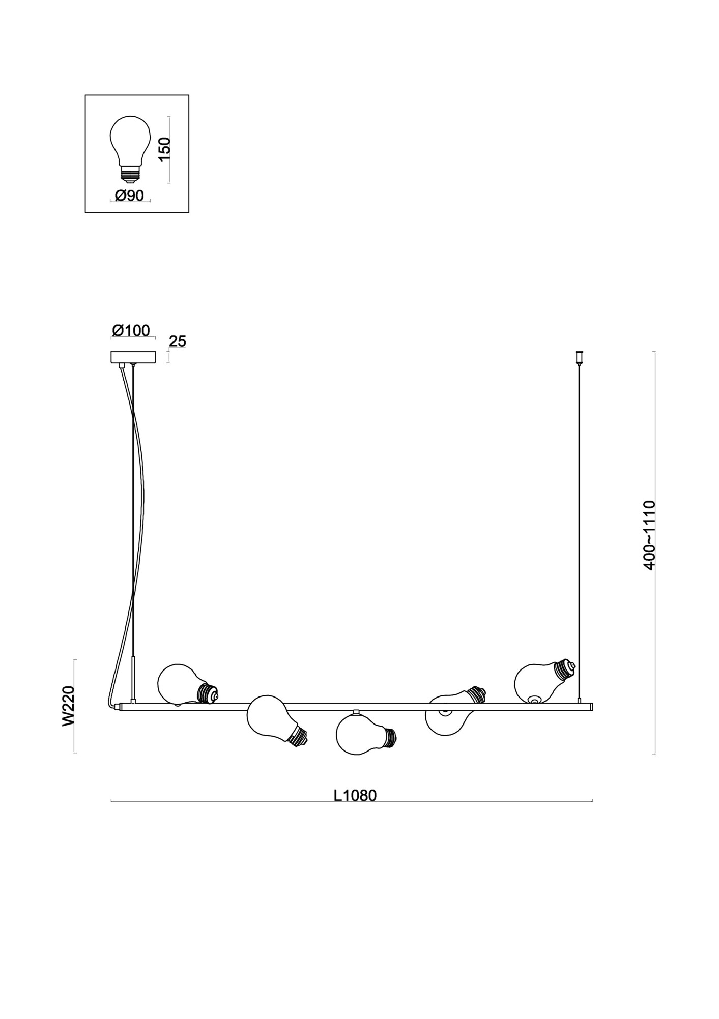 - Высота плафона (абажура): 150