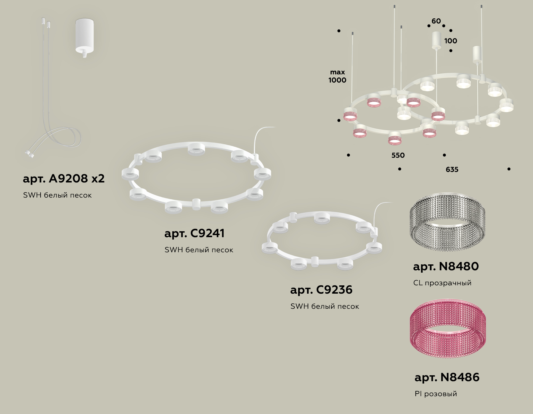 - Цвет плафонов: Прозрачный, Розовый