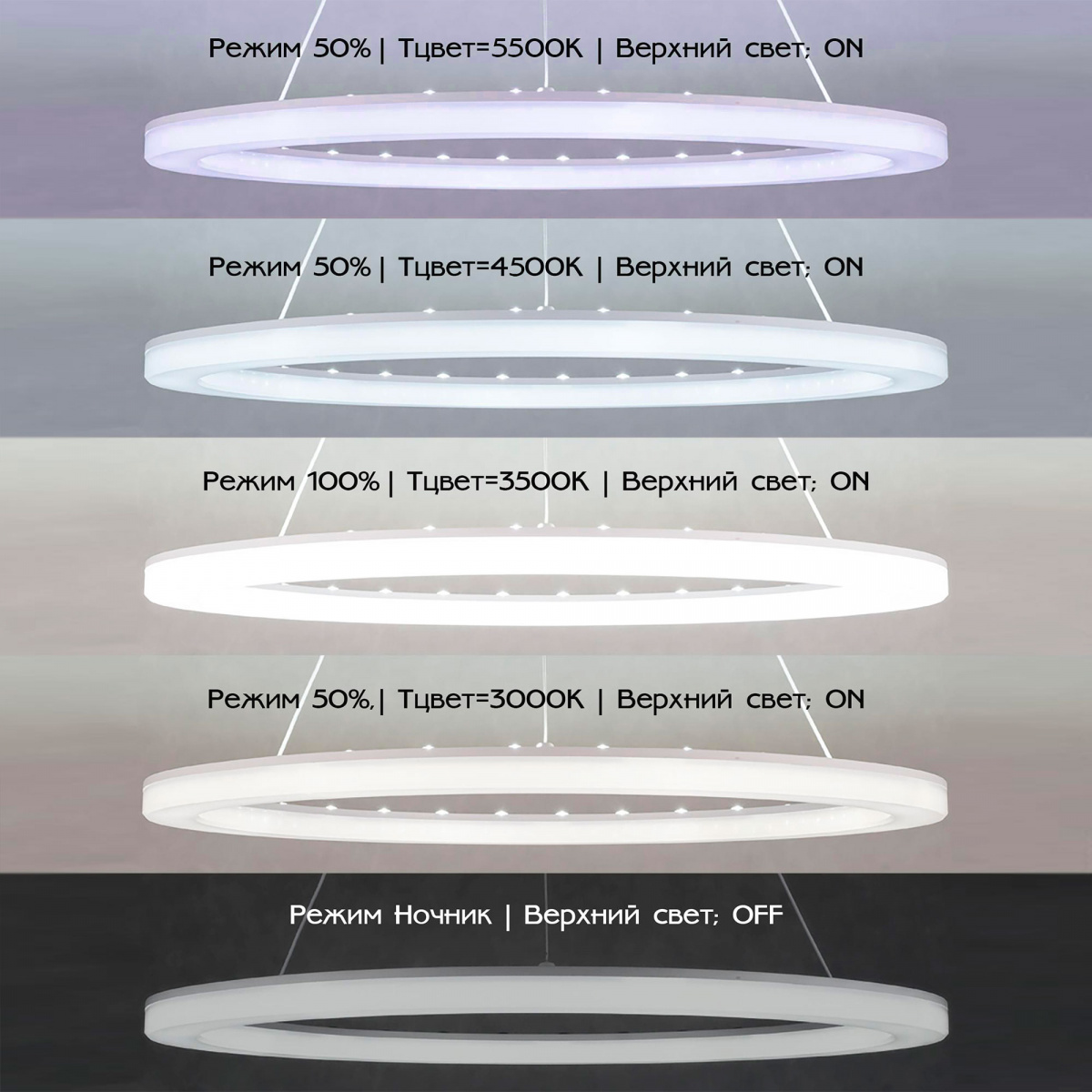 3000-5500K?Цветовая температура – это характеристика интенсивности излучения источника света. Ниже пример как меняется тип света в зависимости от цветовой температуры.