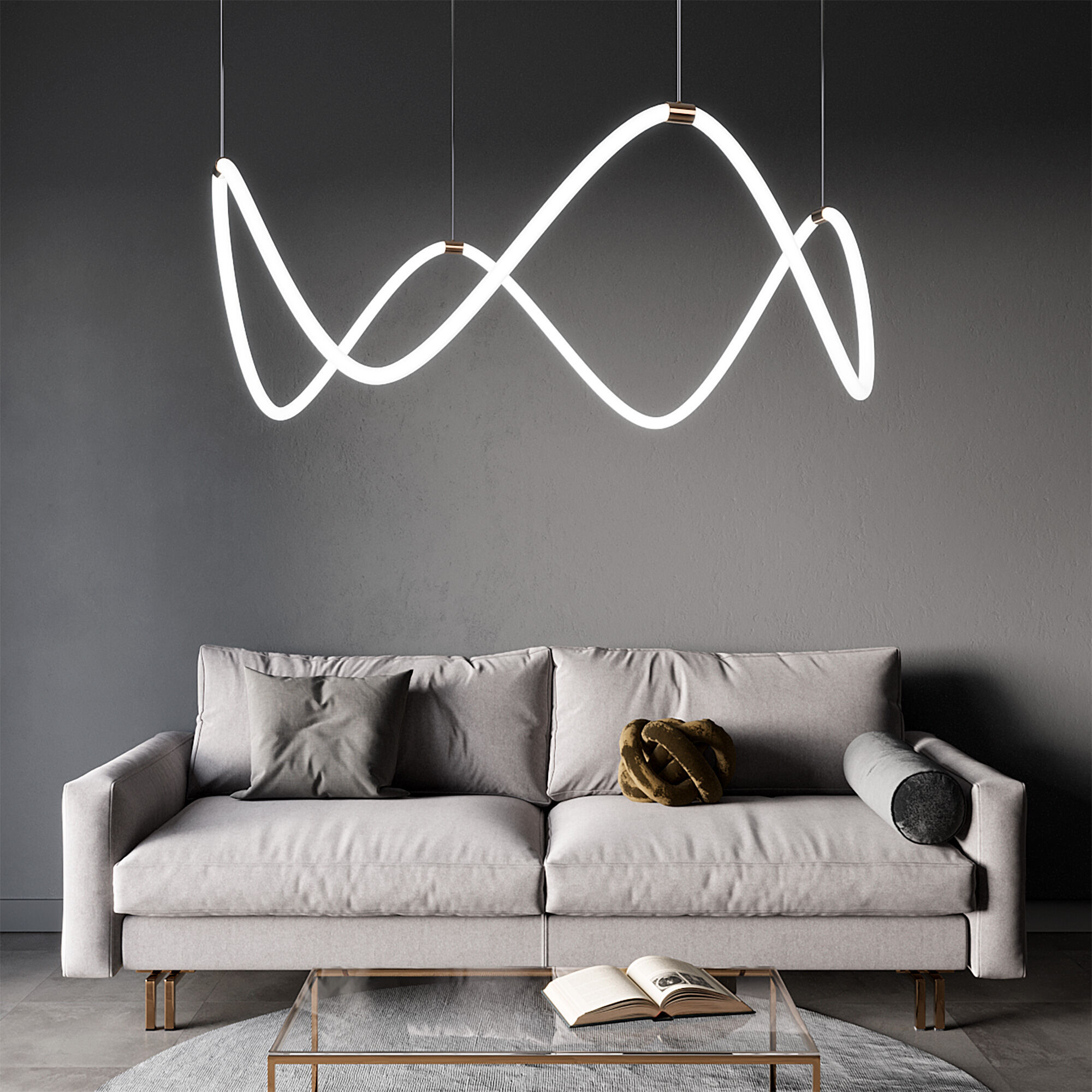 Необычная люстра из гибкого неона Full Light с пультом управления способна в корне изменить привычное восприятие интерьера. Благодаря гибкости неон можно расположить совершенно в разных вариациях.