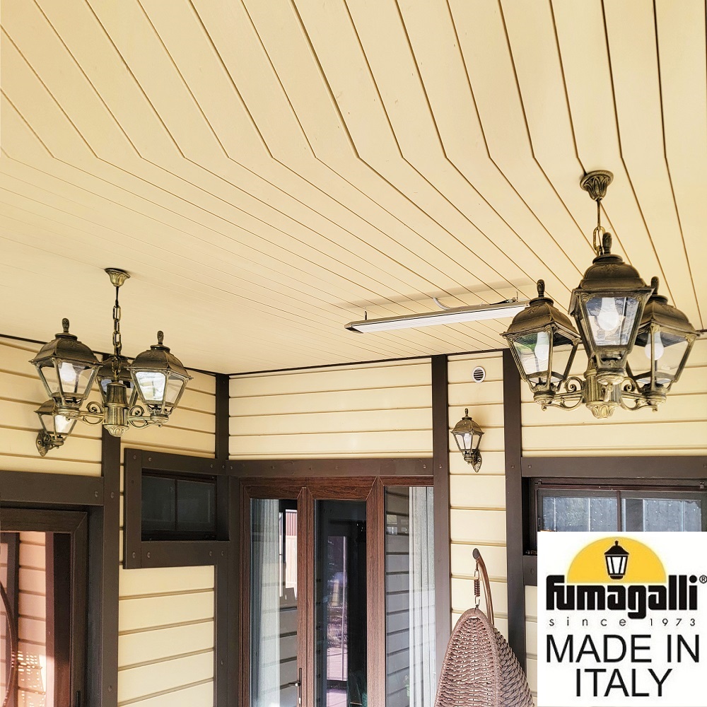 Подвесной уличный светильник FUMAGALLI серии CEFA, модельCEFA/SICHEM 3L. Подвесной светильник-люстра из трех фонарей CEFA на консолях BISSO. Используются для архитектурного освещения в стиле "классика". Место установки уличных люстр - арки, галереи, садовые беседки, веранды, лоджии и другие места где требуется и возможна установка подвесных фонарей. Возможна установка внутри любых помещений в качестве основного или декоративного светильника. Изготовлены в Италии, по уникальным технологиям "FUMAGALLI" из современного композитного полимера RESIN. Этот материал в 5 раз прочнее металла, не ржавеет, не окисляется, не выгорает на солнце, его не нужно красить. Все светильники пыле-влаго защищены по стандарту IP55 (Пылезащищенные, защита от водяных струй с любого направления). В комплекте идут крепежи и закладные элементы. Рассеиватель выполнен из антивандального, не мутнеющего и не горючего PMMA (ПолиМетилМетаАкрилат). Срок службы светильника - не менее 20 лет. Температура использования от -60 до +90. В серии CEFA есть фонари в настенном (BISSO/CEFA, OFIR/CEFA, MIRRA/CEFA, PORPORA/CEFA) подвесном (SICHEM/CEFA) и наземном исполнении (MINILOT/CEFA, MIZAR.R/CEFA, IAFAET.R/CEFA, ALOE.R/CEFA, ARTU/CEFA, GIGI/CEFA, RICU/CEFA, RICU/ISSO/CEFA 2L, NEBO/CEFA, NEBO OFIR/CEFA 2L, NEBO OFIR/CEFA 3L) со столбами разной высоты, с разным количеством и конфигурацией голов. Консоли настенных фонарей и кронштейны светильников на столбах освщения могут устанавливаться вверх/вниз. Столбы выше 150 см имеют в основе мощную стальную трубу с двойной оцинковкой. При заказе требуется выбрать цвет корпуса, цвет плафона и тип патрона. По стилю и дизайну серия уличных светильников CEFA похожа на светильники большого размера SIMON и на светильники очень большого размера (Гранд) PIETRO. По размеру CEFA относится к средним светильникам как серия RUT, SALEM и GLOBE 300.