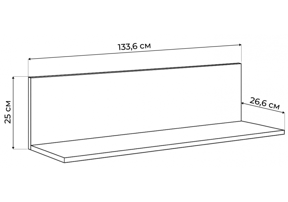 Материал каркаса - ЛДСП; Ширина - 133,6; Глубина - 26,6; Высота - 25;