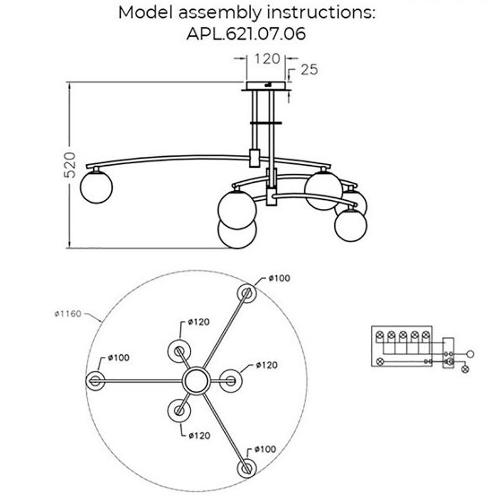 - Количество ламп: 6 шт