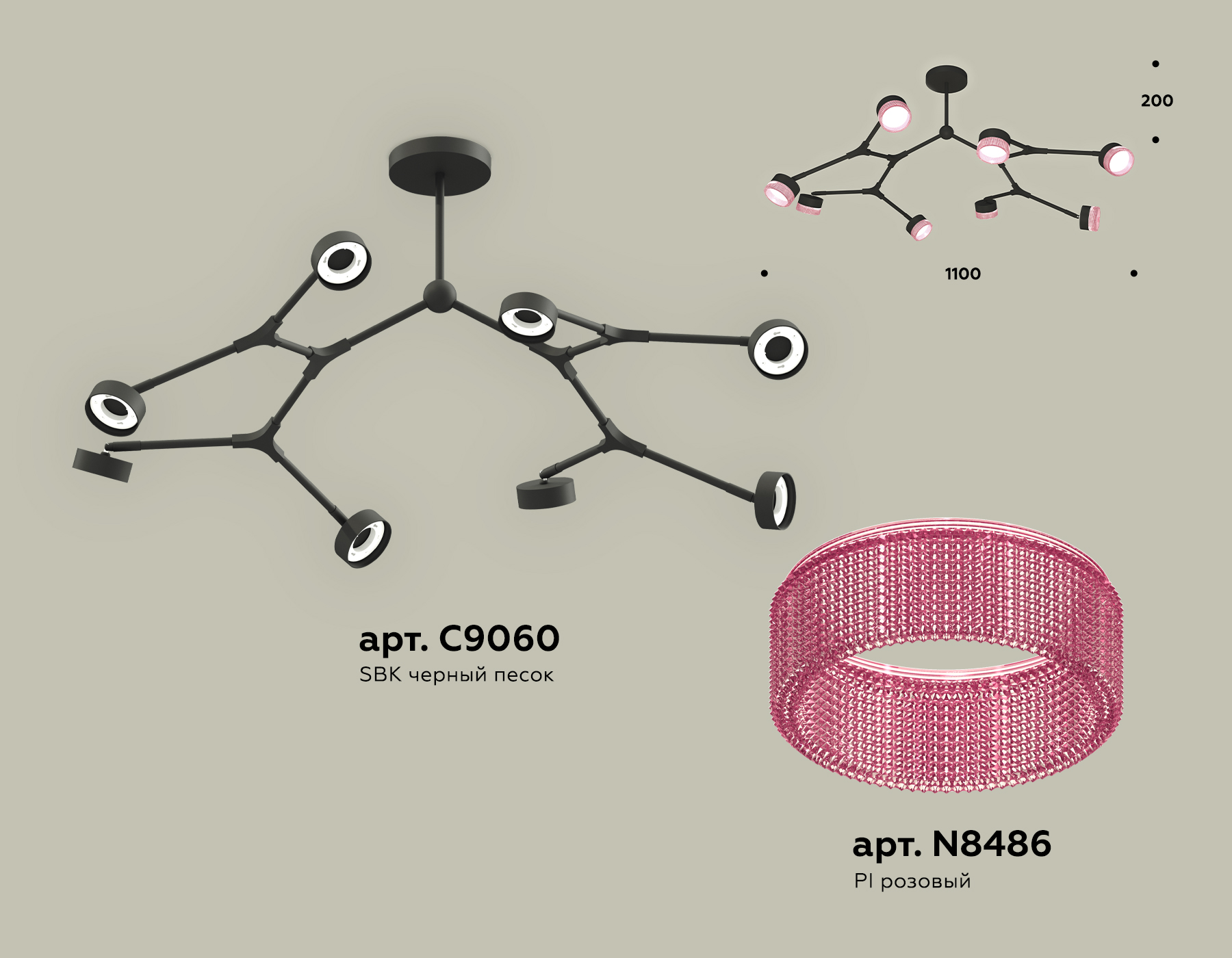 - Цвет плафонов: Розовый