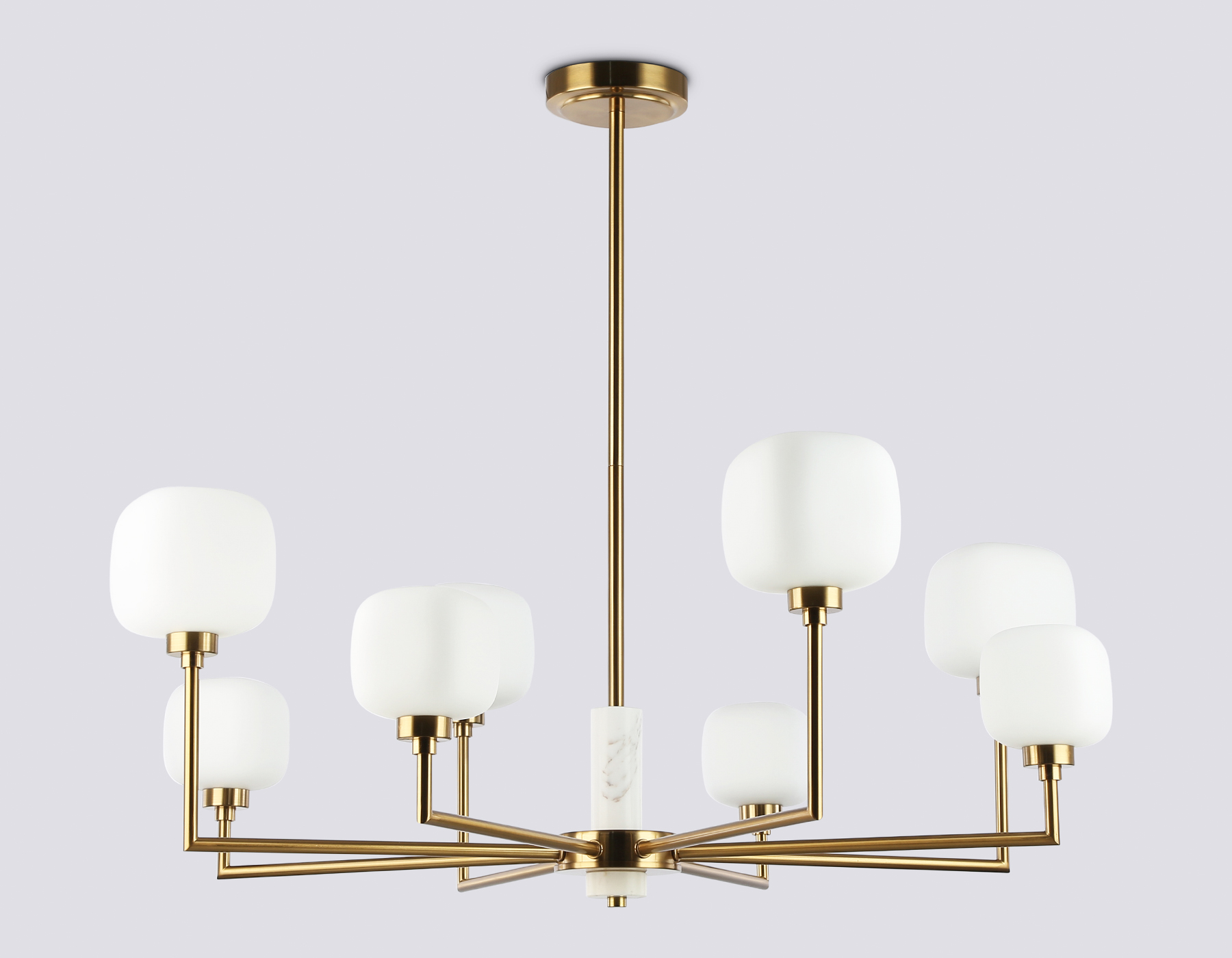 Люстра на штанге с мрамором из коллекции HIGH LIGHT. Модель LH53017 представлена в стиле неоклассика. Люстра выполнена из плафонов белого матового стекла, металлического каркаса цвета латунь и декорирована элементами из мрамора. Для данной модели подойдут лампы с цоколем G9. Люстра будет прекрасным дополнением в любом помещении.
