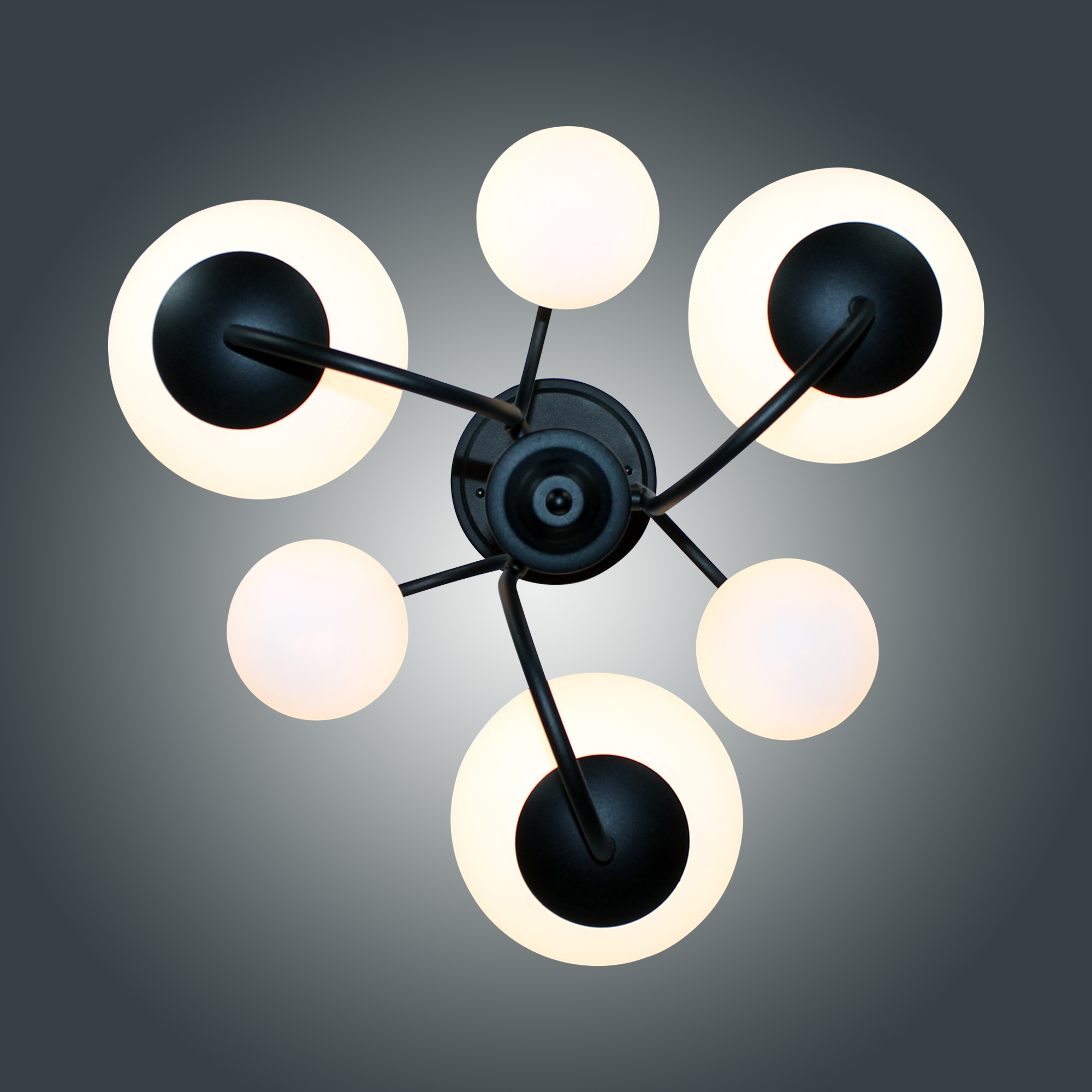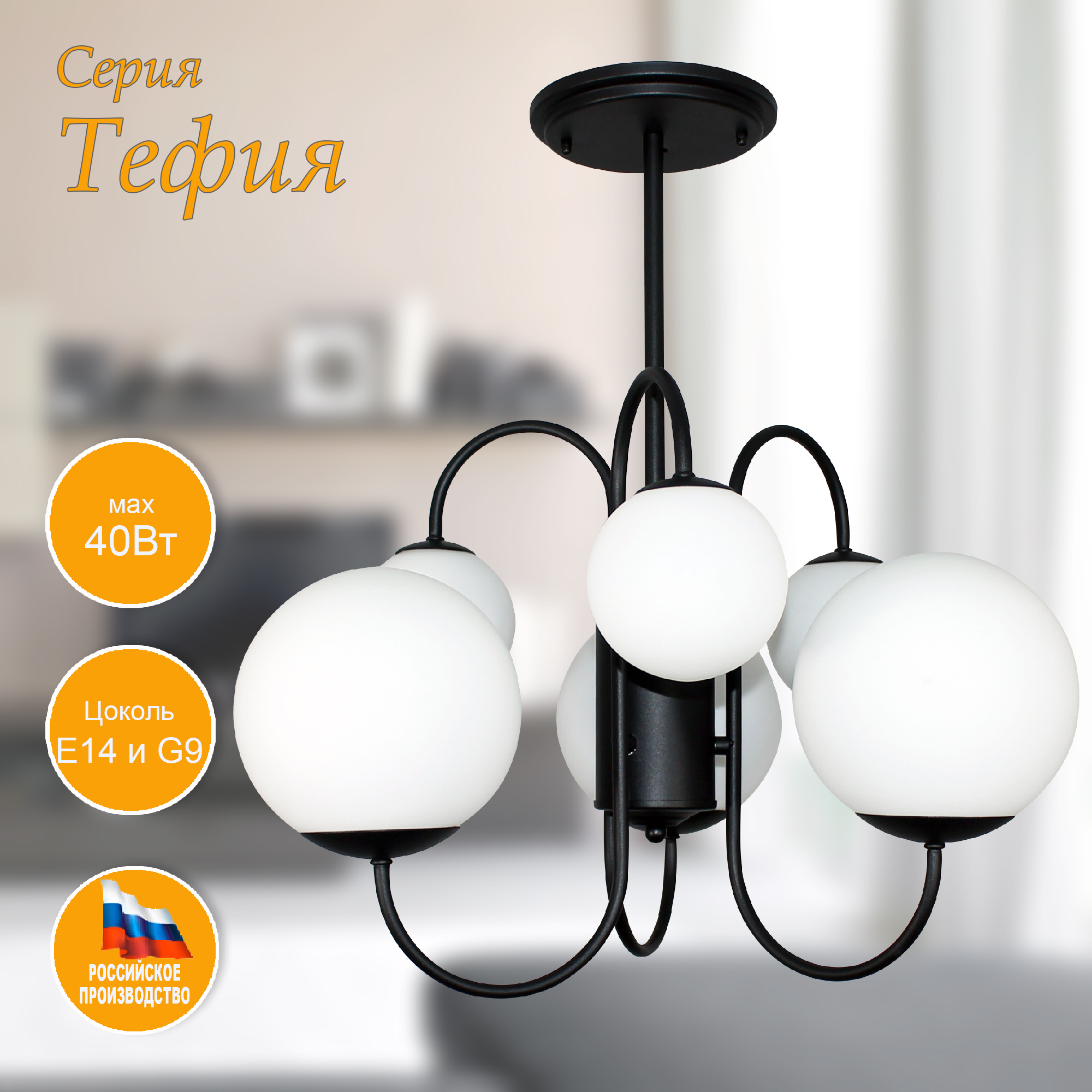 Потрясающая Люстра из Коллекции " Тефия " отлично подойдет для установки в комнате, оформленной в современном стиле. Рекомендуемая площадь освещения - 16 м2. Источник света - лампы накаливания мощностью до 40 Вт, а также светодиодные лампы или энергосберегающие лампы. В светильнике используются лампы с цоколем Е14 в большом шаре и G9 в малом шаре . Плафоны выполнены из опалового стекла ручной работы - это позволяет получить мягкий и рассеянный свет . Узел крепления люстры - на планку позволяет легко монтировать его на любой тип потолка. Светильник дает максимум света и оптимально вписывается в интерьер и создает уют в помещении, будь то гостиная или спальня.Данную модель 1005405126 можно купить в интернет магазине 220svet.ru