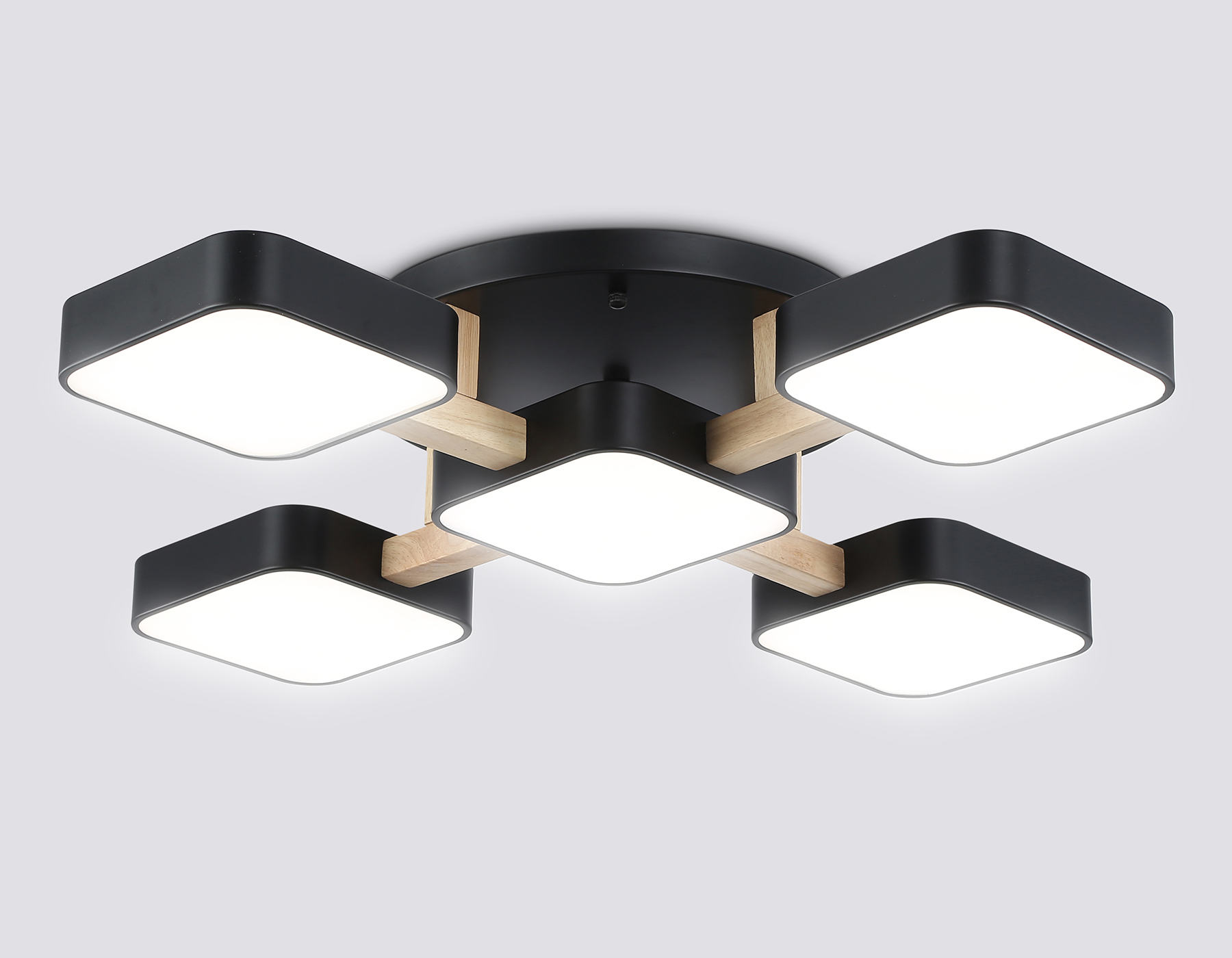 Подвесной светодиодный светильник, коллекция COMFORT. Модель FL4883 представлена в современном стиле хай-тек, техно. Светильник выполнен из металла и дерева. Модель оснащена встроенными светодиодами, благодаря чему вы забудете о замене дополнительных ламп. Данная модель подходит для натяжных потолков и будет прекрасным дополнением в любом помещении. FL4883/5 BK/WD черный/дерево 90W 3000-6000K 675*675*110 (без ПДУ) . Данную модель FL4883/5 BK/WD спешите купить с быстрой доставкой в магазине 220svet.ru